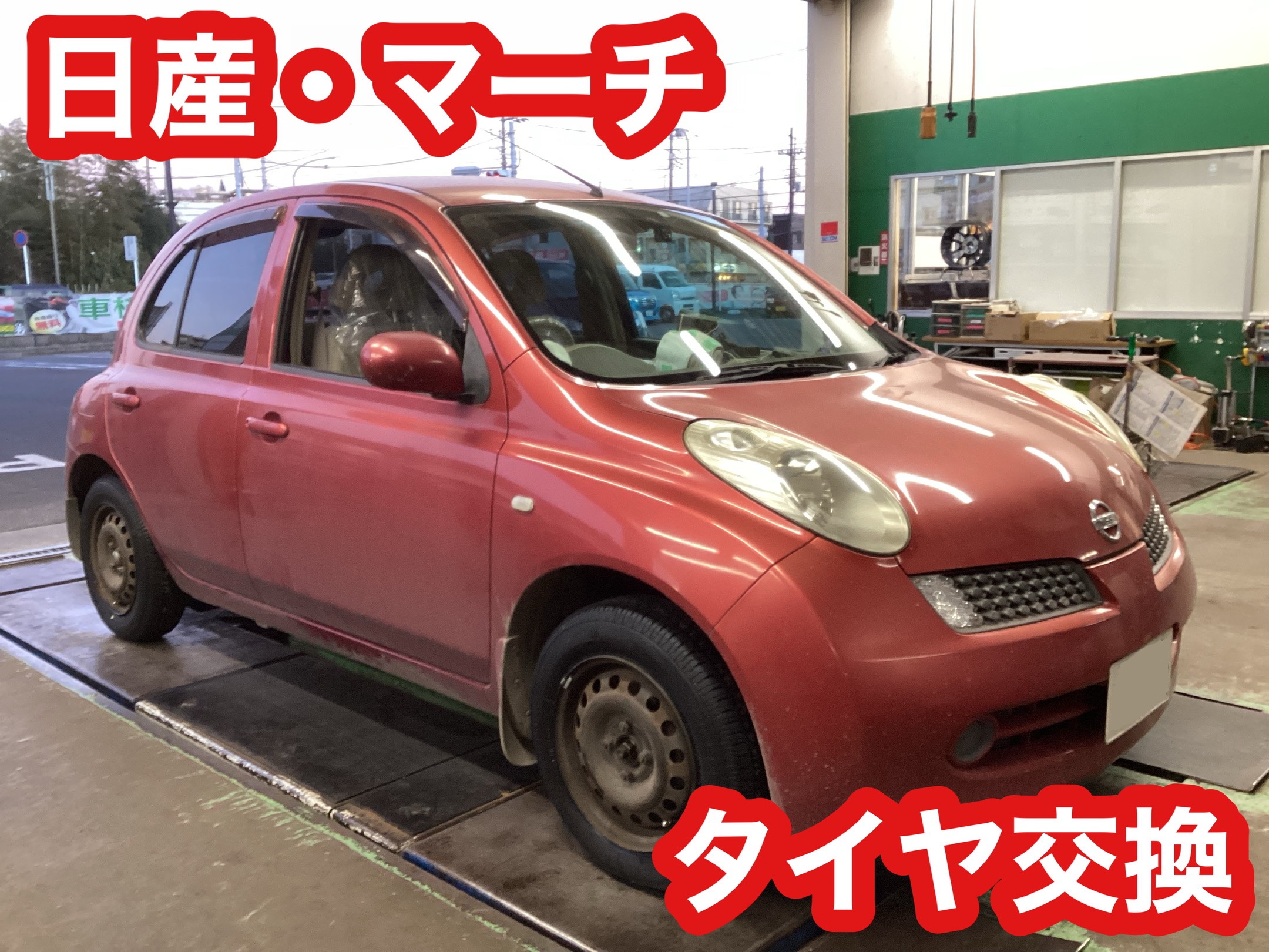 日産・マーチのタイヤ交換をご紹介いたします!
