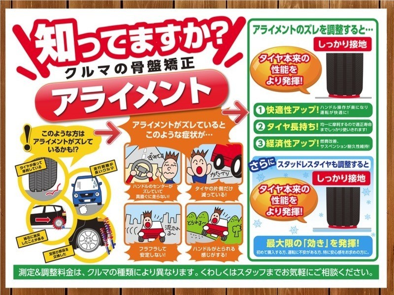 タイヤ館では、アライメントの測定・調整ができるのはご存知でしょうか??