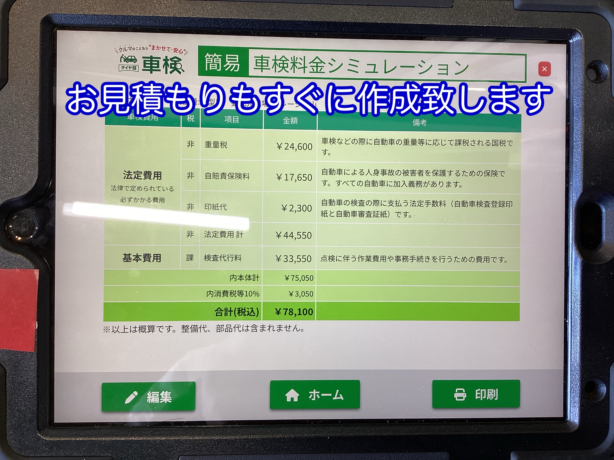 タブレットにてお見積もりすぐに作成致します。