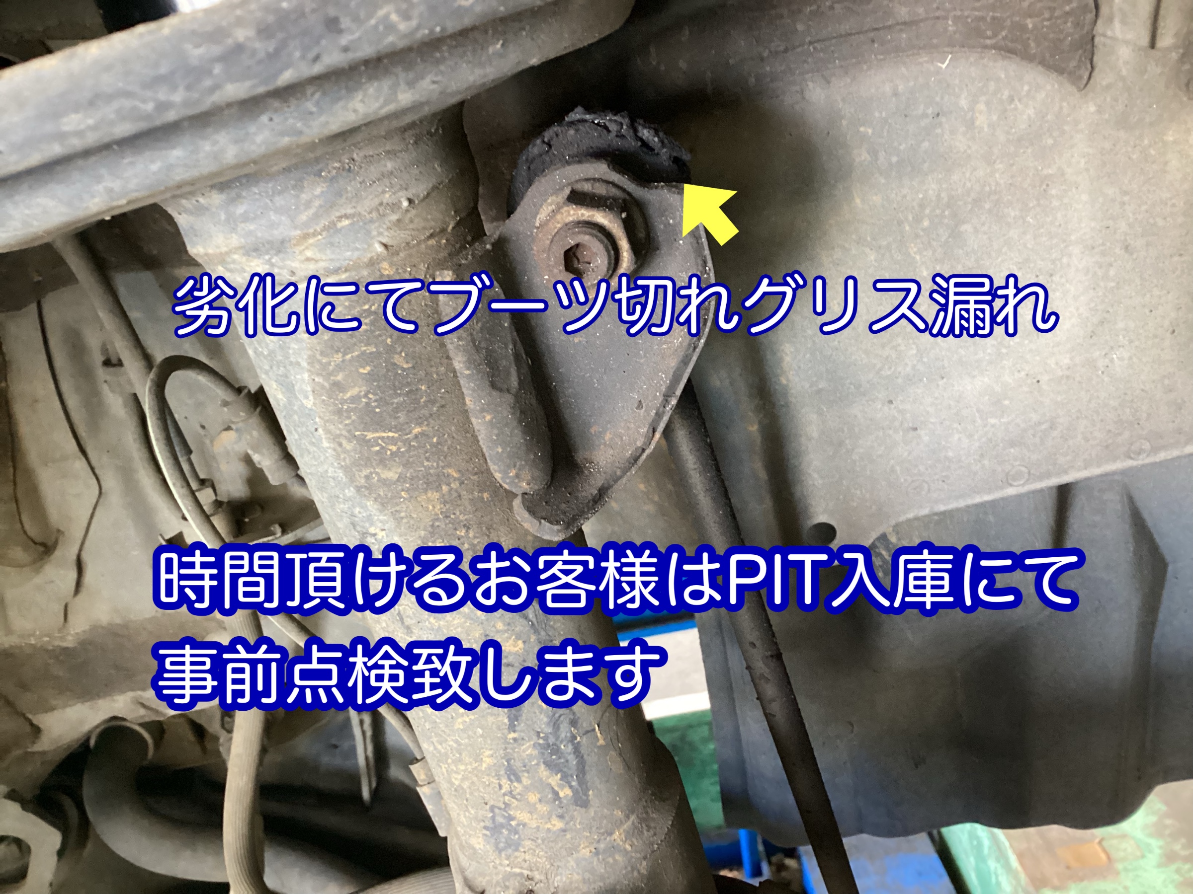 作業時間お待ち頂ければ作業PIT入庫にて下廻りなどの点検も致します