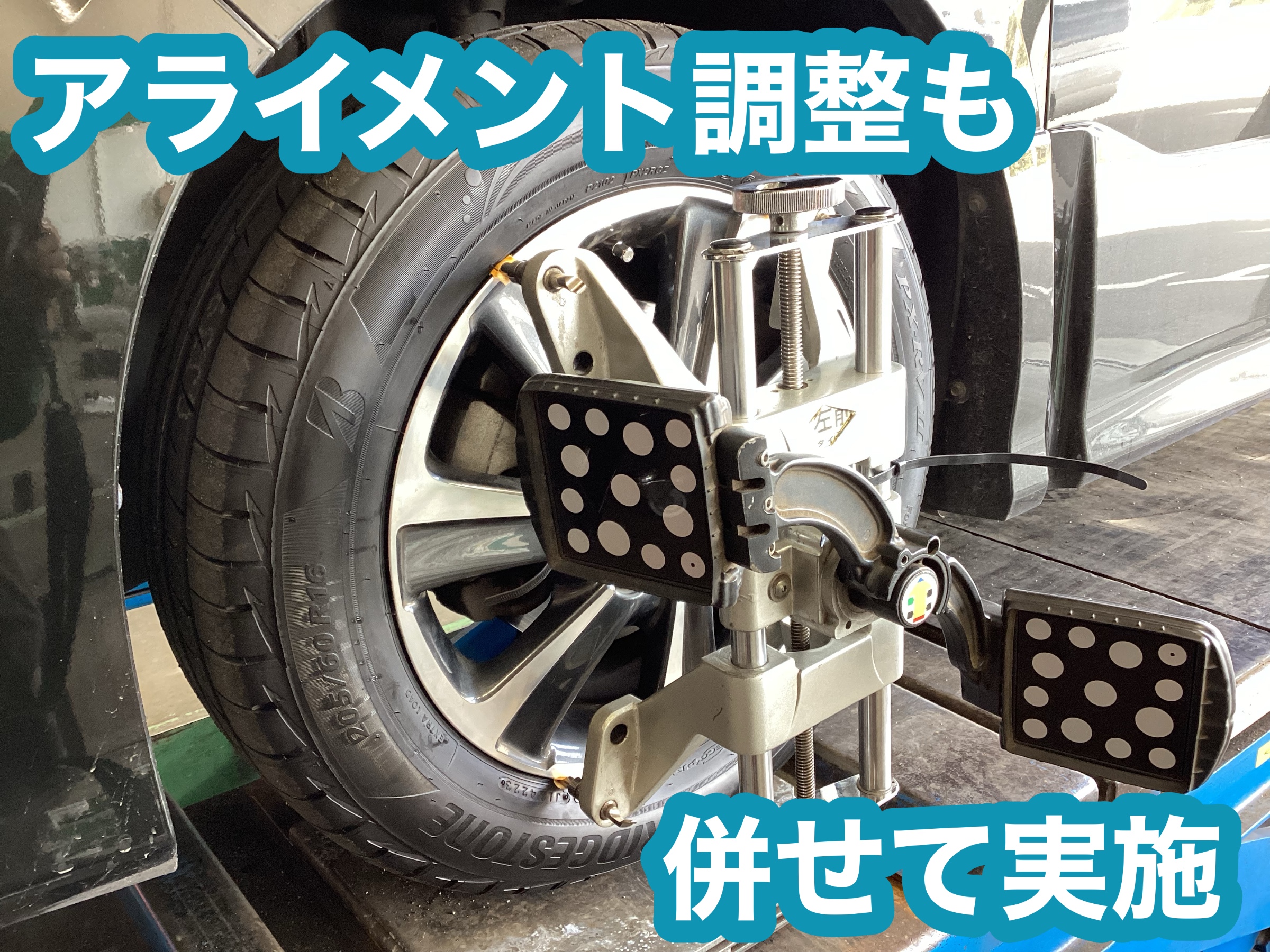 アライメント(タイヤの向き)の調整も併せて実施いたしました。