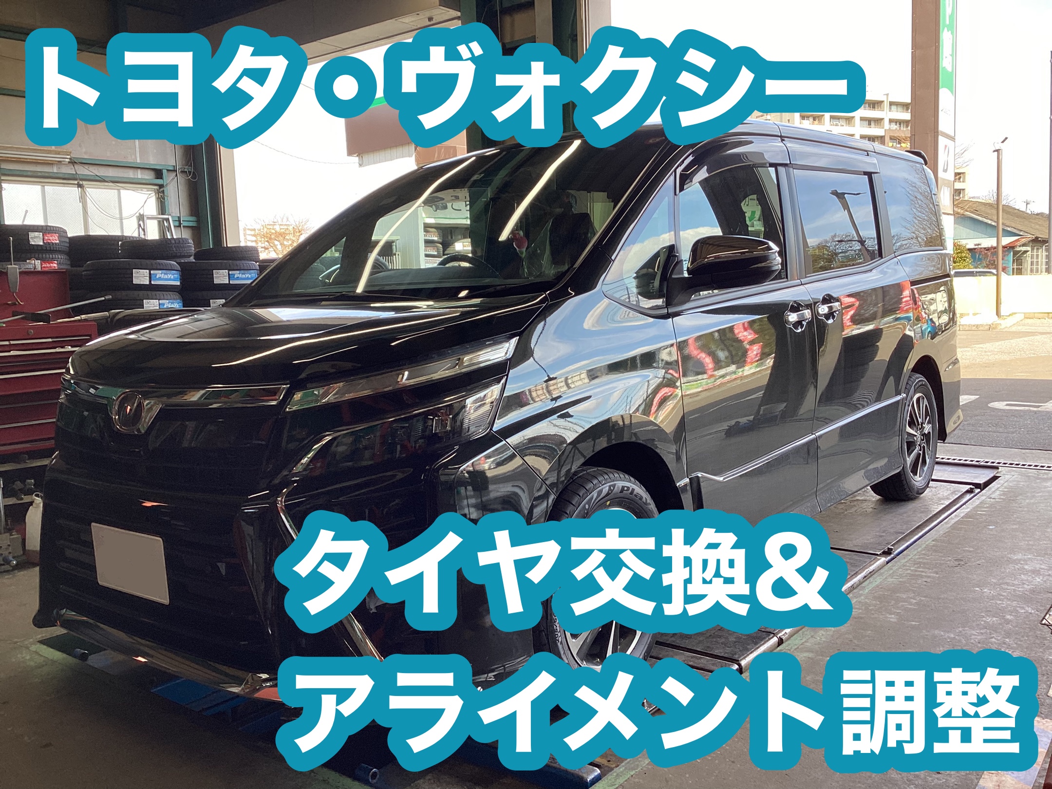 トヨタ・ヴォクシーのタイヤ交換&アライメント調整をご紹介いたします!