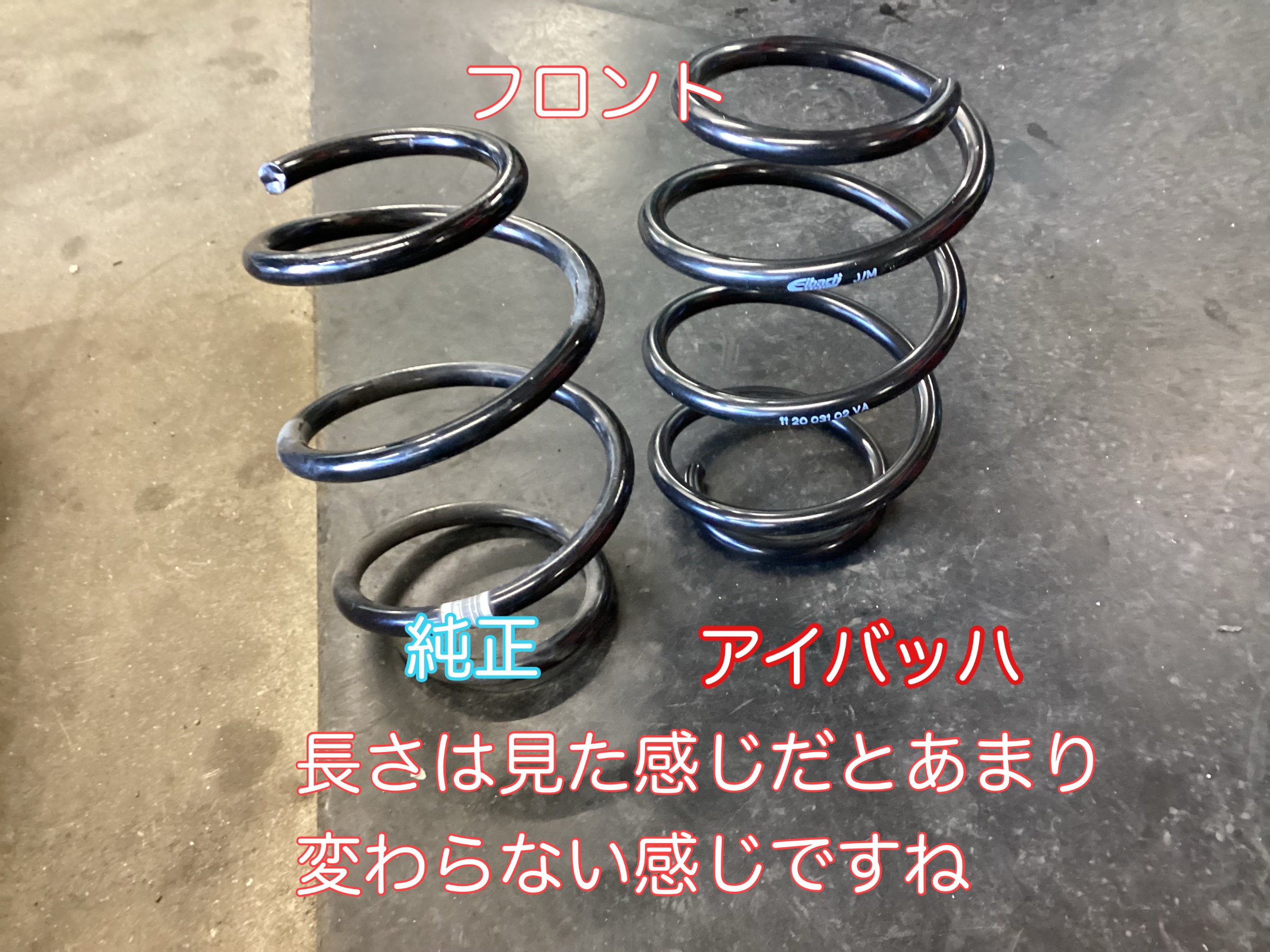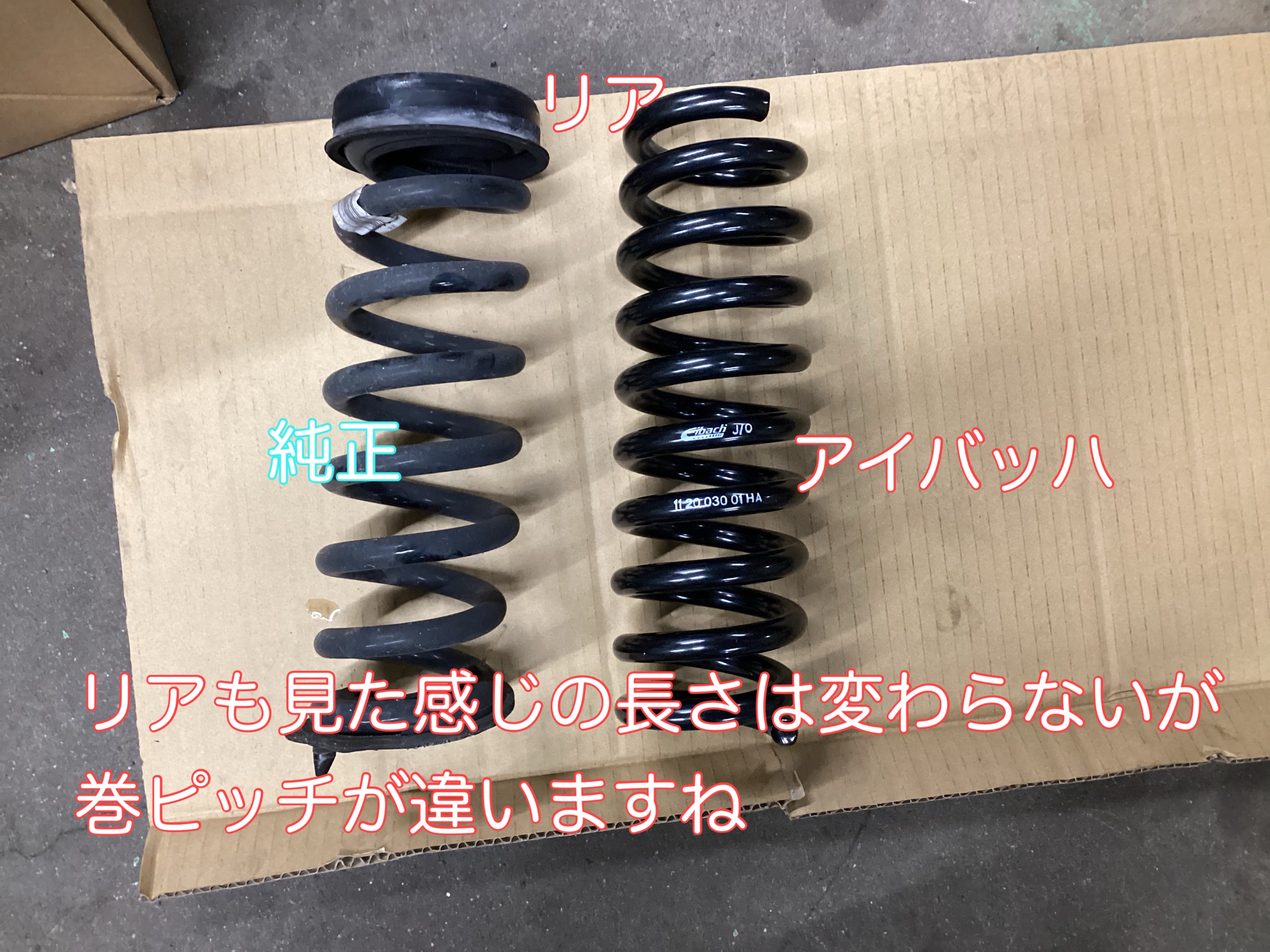 フロントは見た目でもダウンした感じが分かりますが、リアは若干下がった程度の見た目になります。