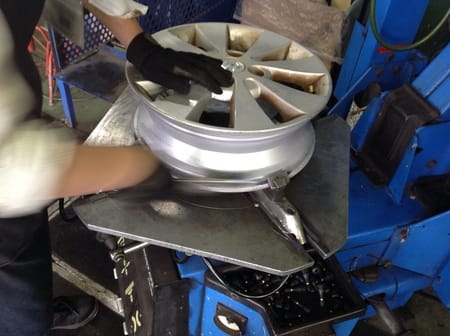 ② 古いタイヤを外し、ホイールの清掃。
