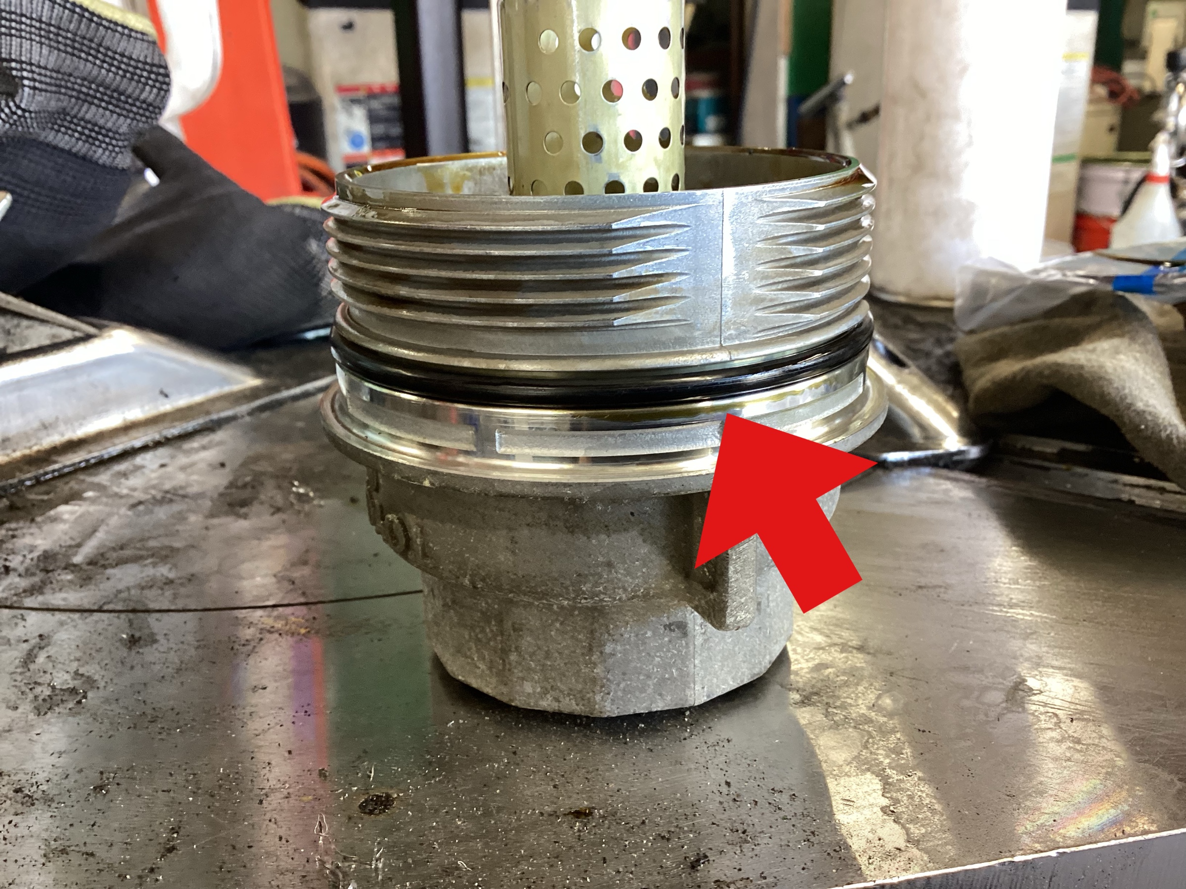パッキンを交換する際、ゴムパッキンが伸びないように少しコツが必要で、無理に引っ張って取り付けてしまうとオイル漏れの原因になってしまいます、、、