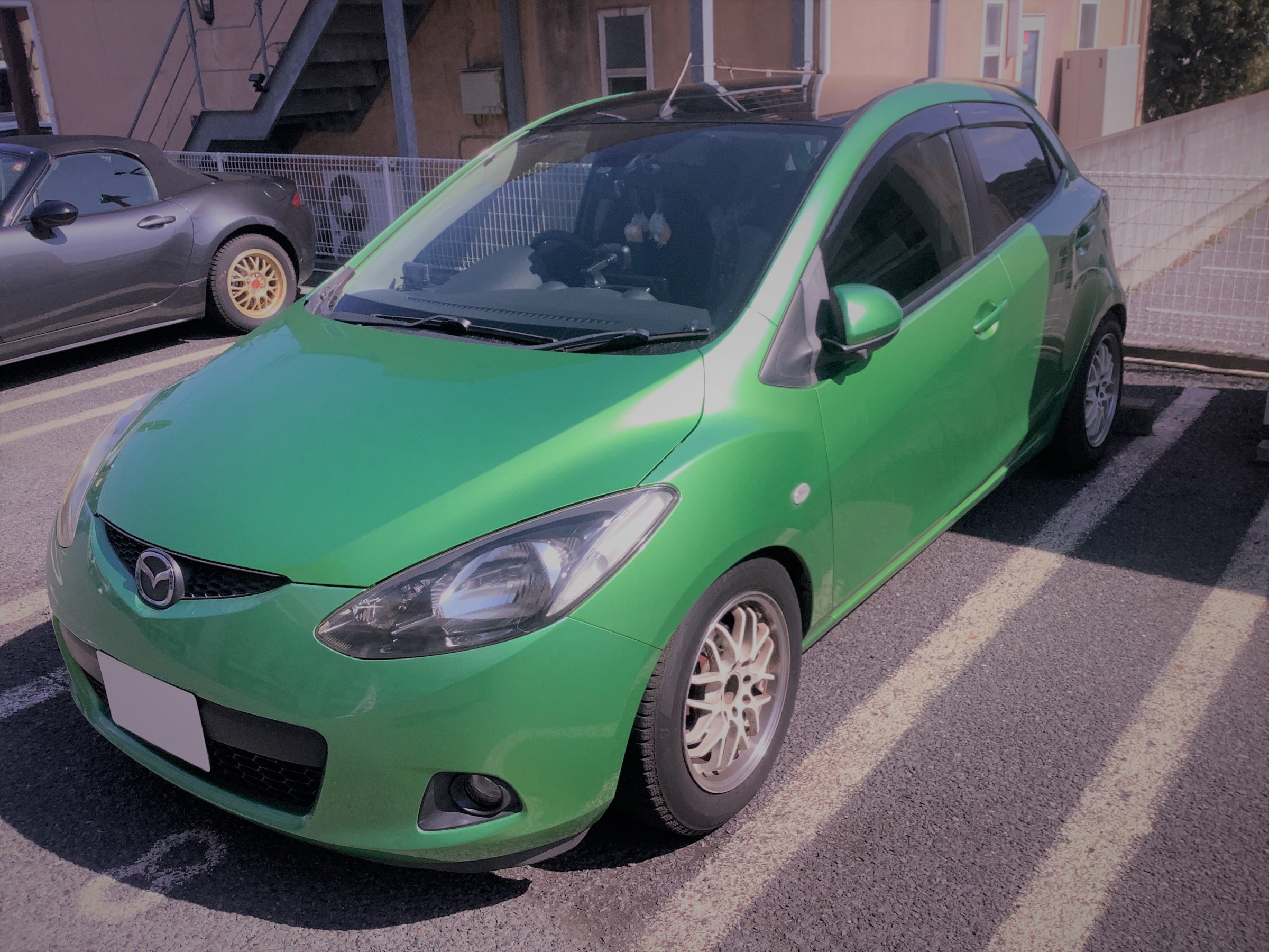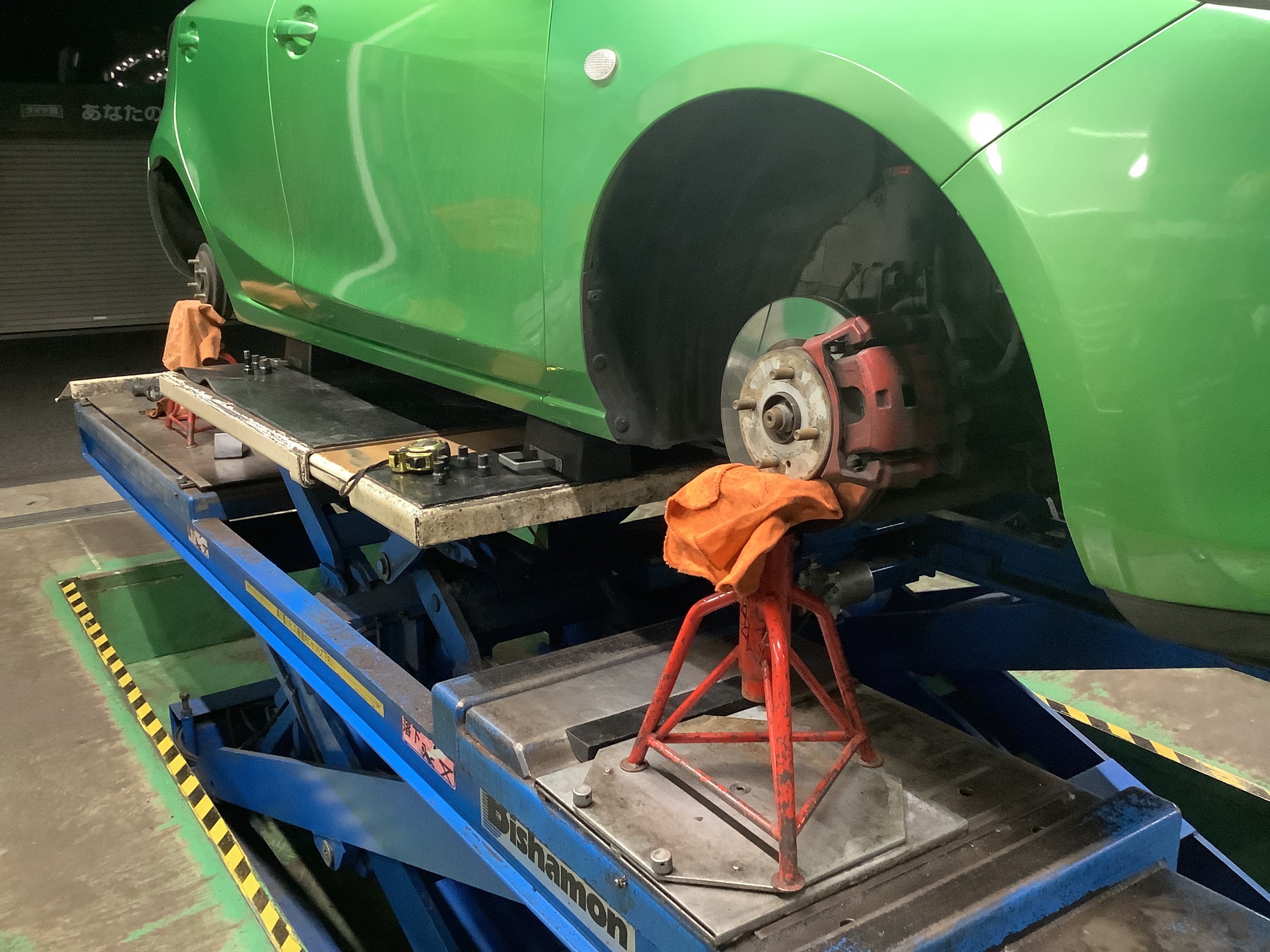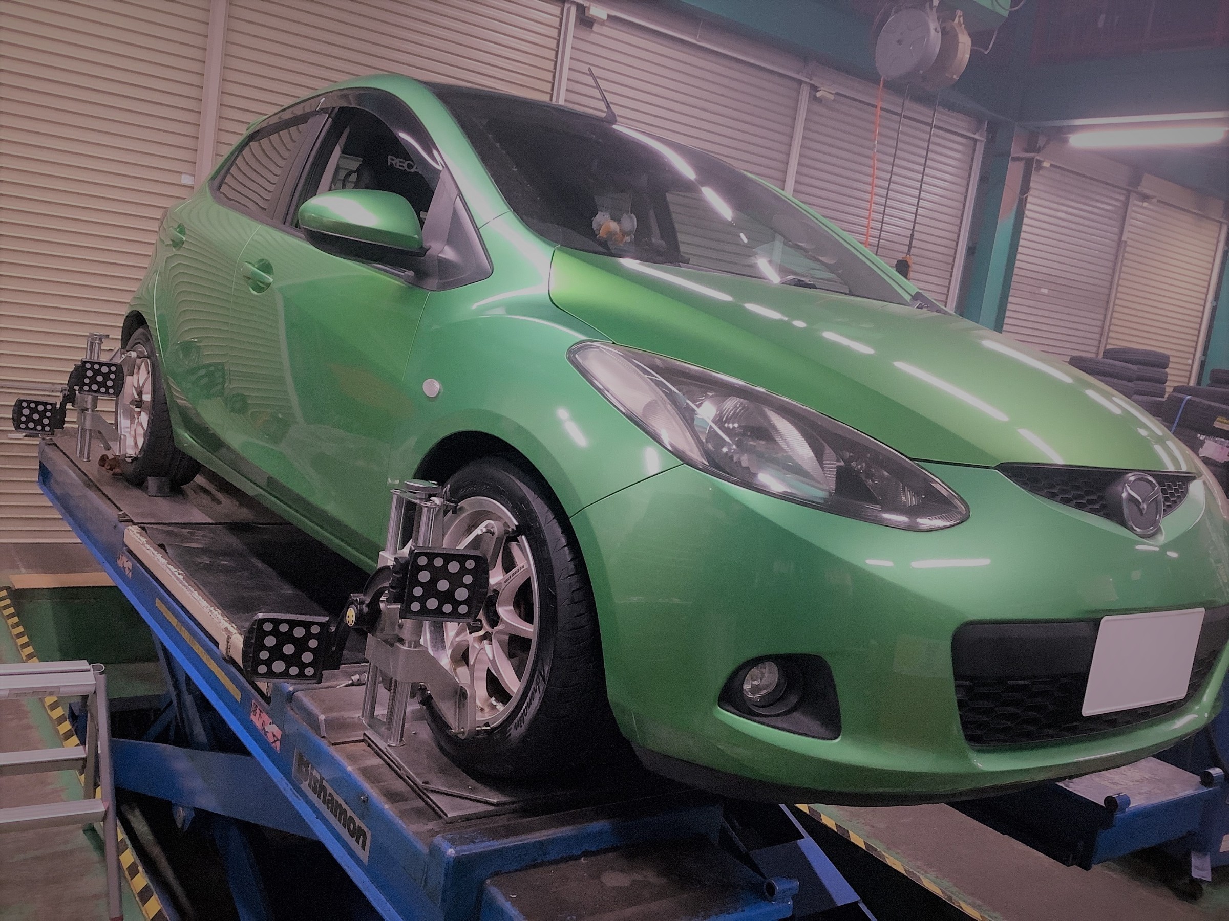 マツダDE5FS型デミオ、夏タイヤ交換&車高調整&アライメント調整!