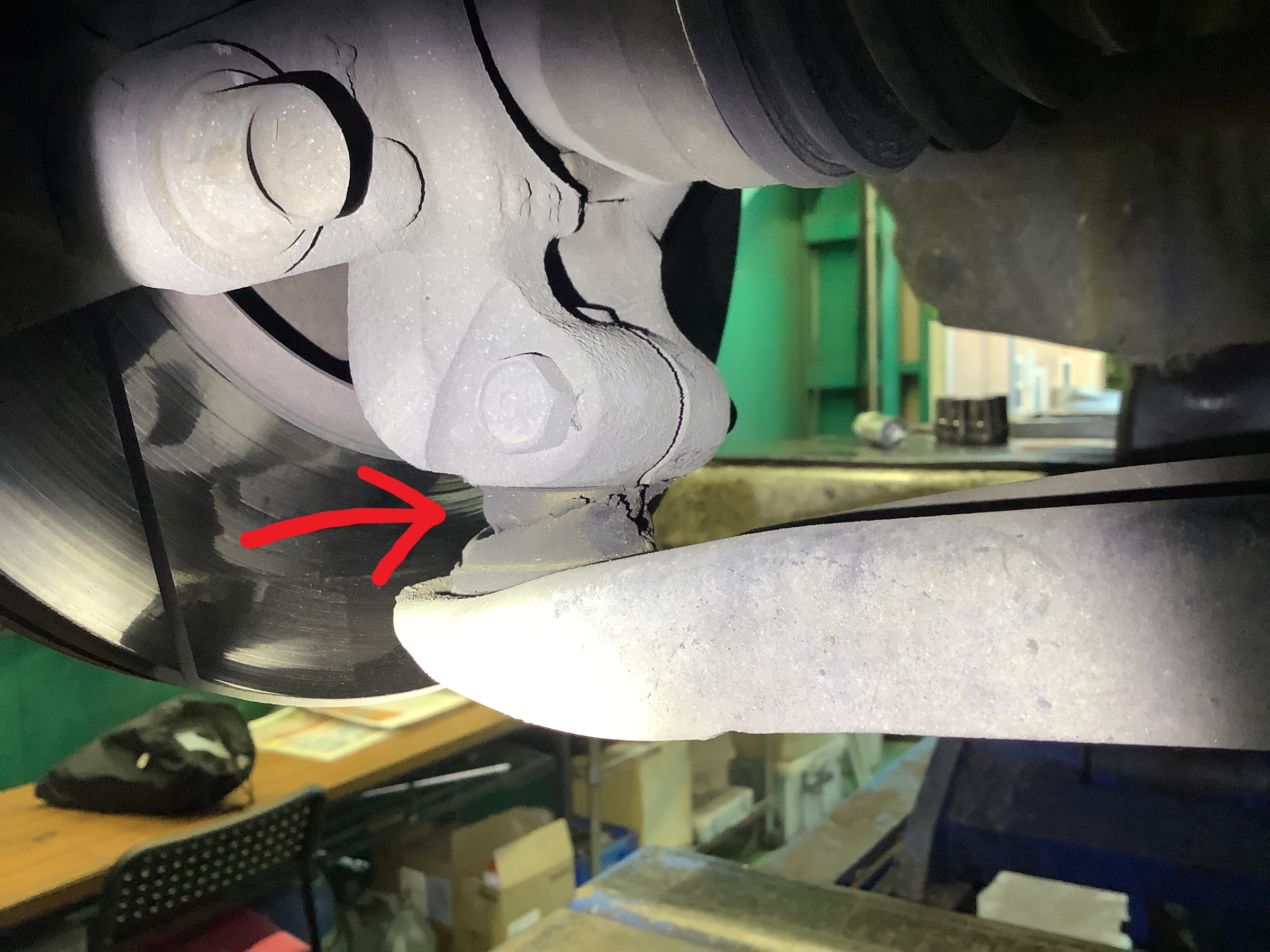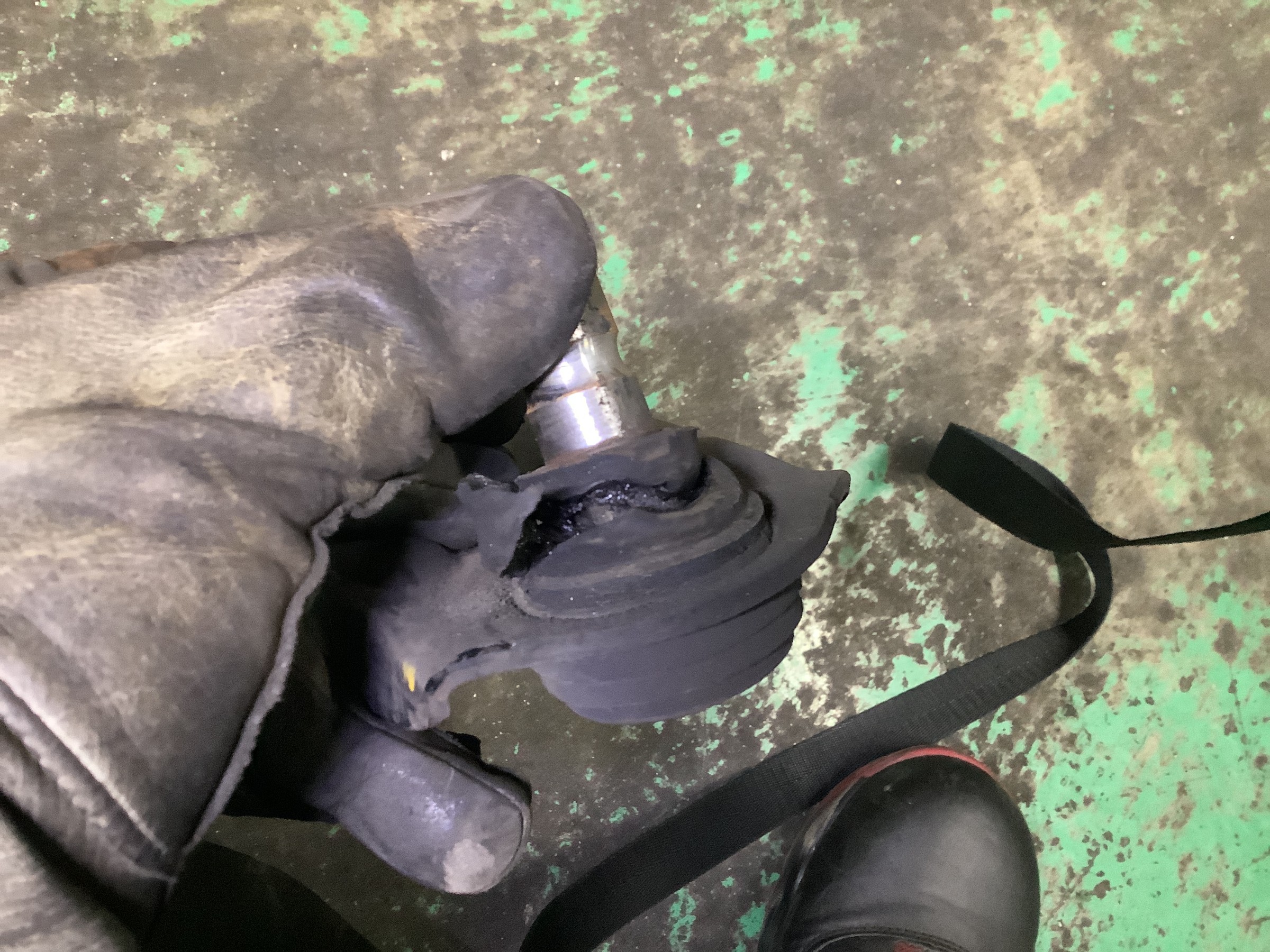 フロントのナックルに刺さる、ロアアームのピロのブーツ切れ!