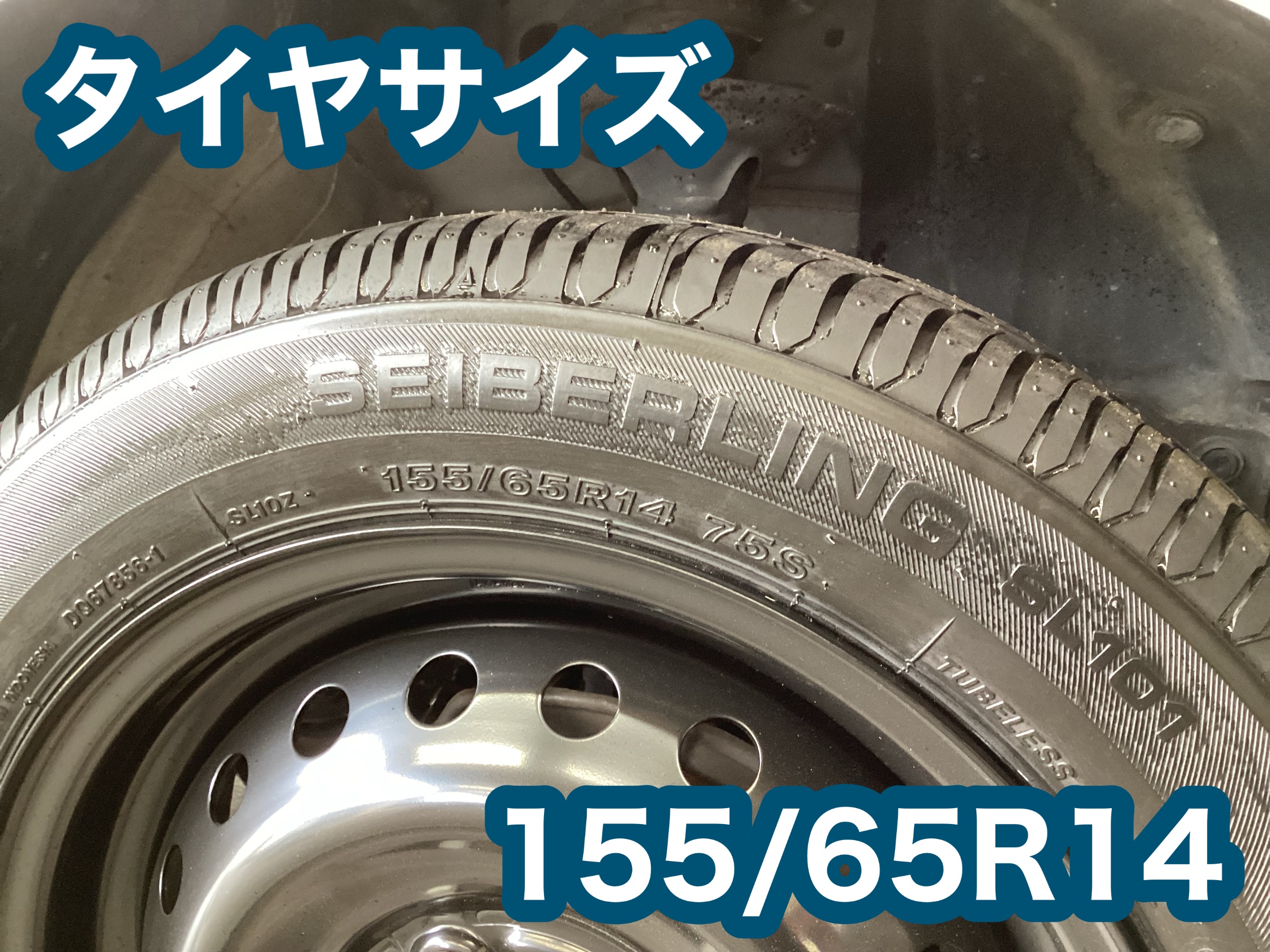 タイヤサイズは155/65R14です。