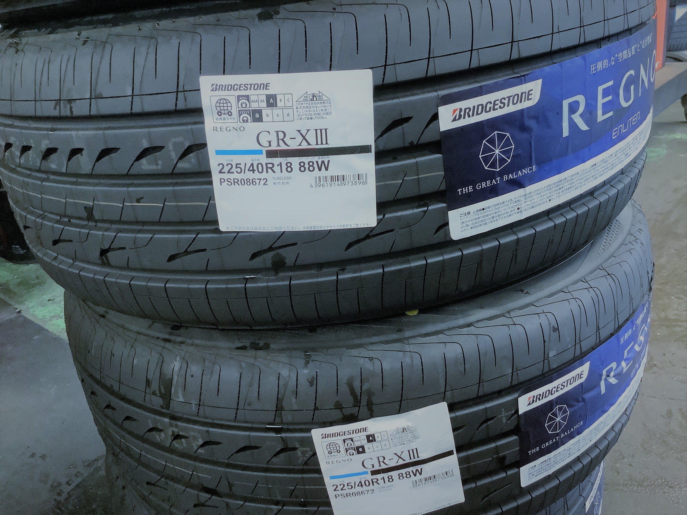 お取り付けさせていただくタイヤは、ブリヂストンの最高峰コンフォートタイヤREGNO GR-XⅢ[レグノ ジーアール・クロススリー]!サイズは225/40R18!
