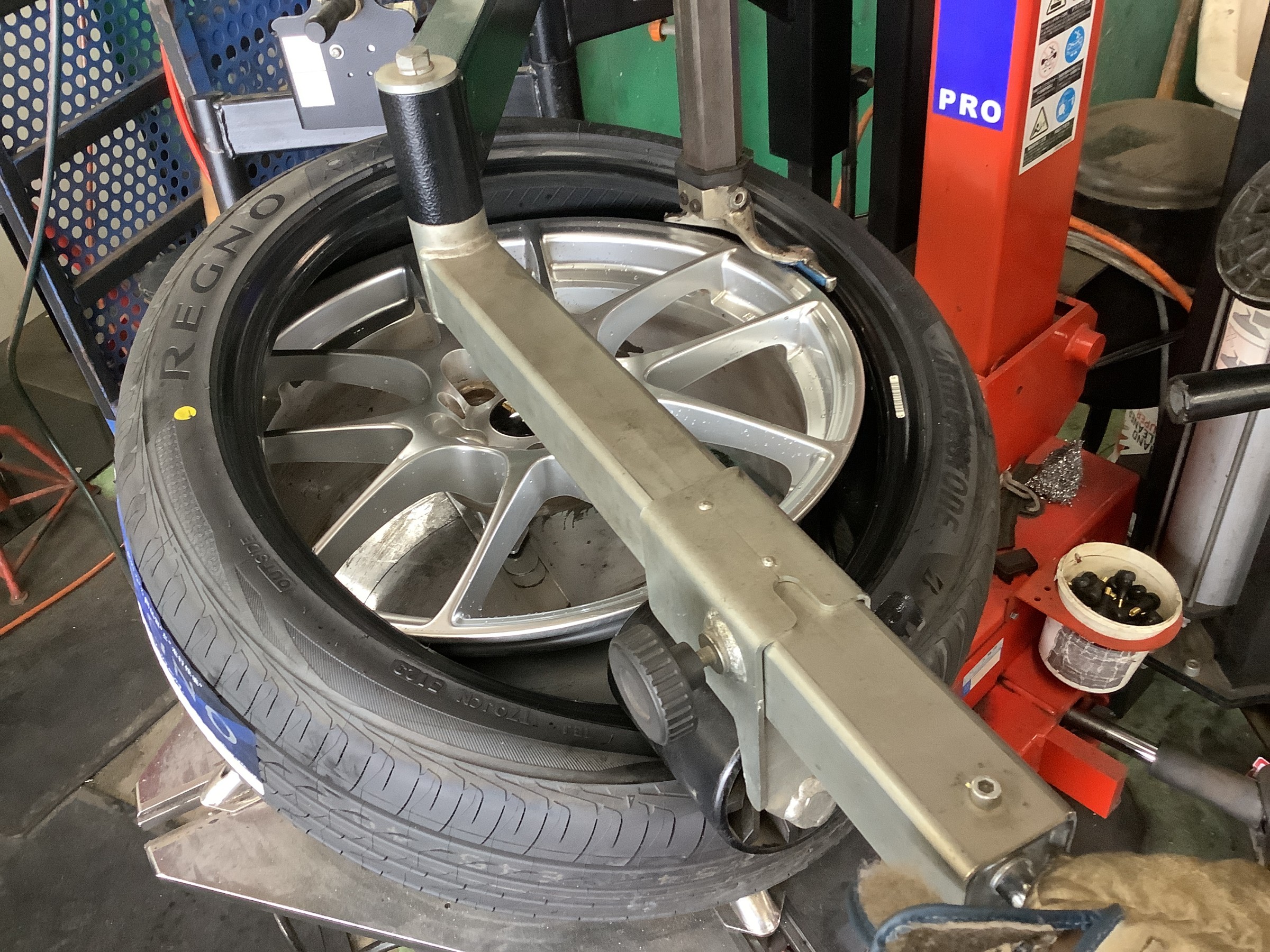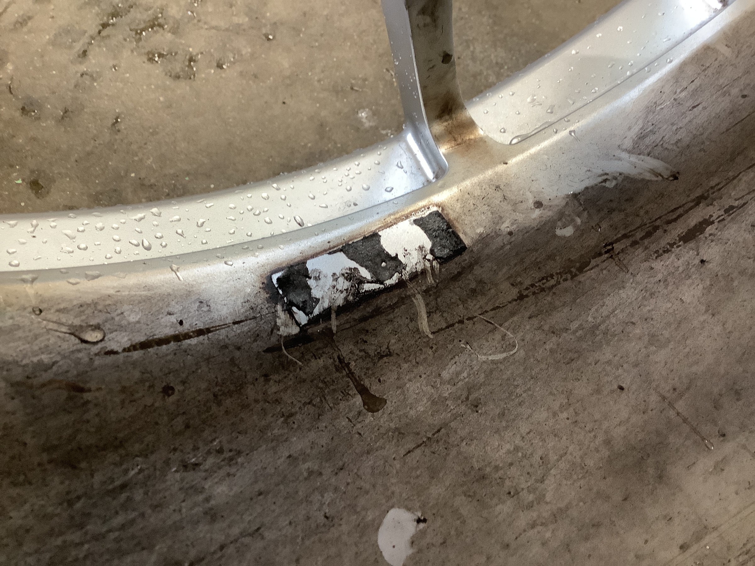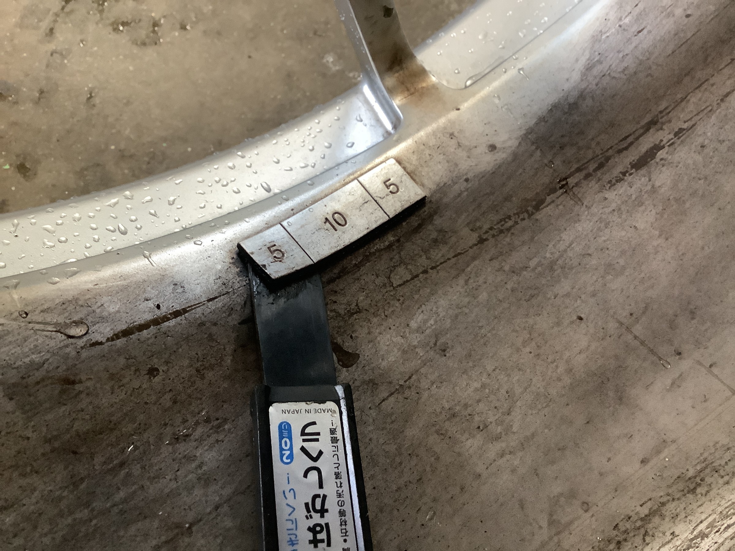 タイヤとホイールの組み合わせによって生じるアンバランスを調整する重りを新タイヤ用に貼りなおす為に古いのを撤去して、
