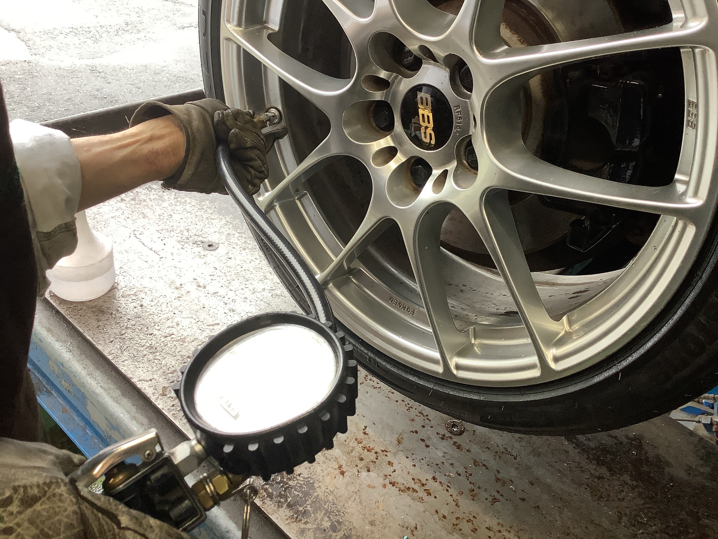 空気圧は自動充填機で合わせていますが、機械任せですとズレが生じる場合もございますので必ず最後には人の目と手で合わせなおしています( ^ω^ )