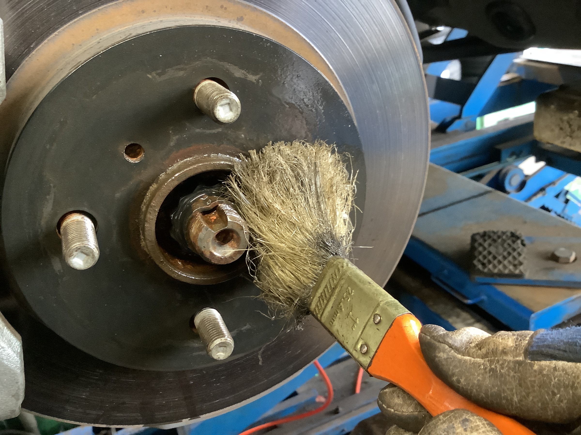 タイヤホイールを車体から外したら、ハブの防錆!