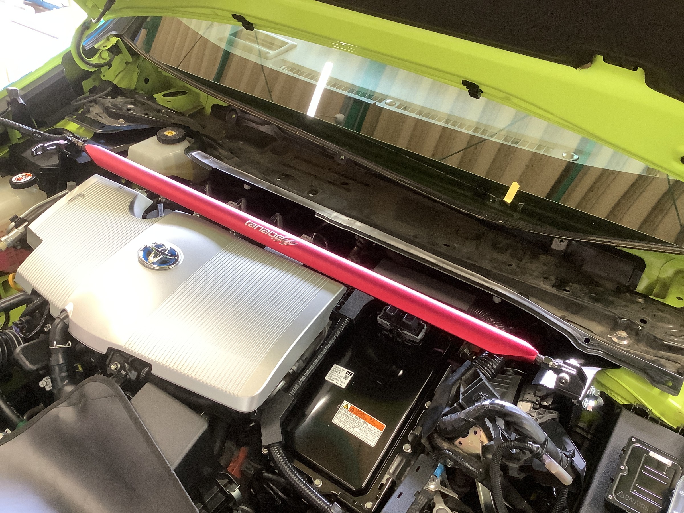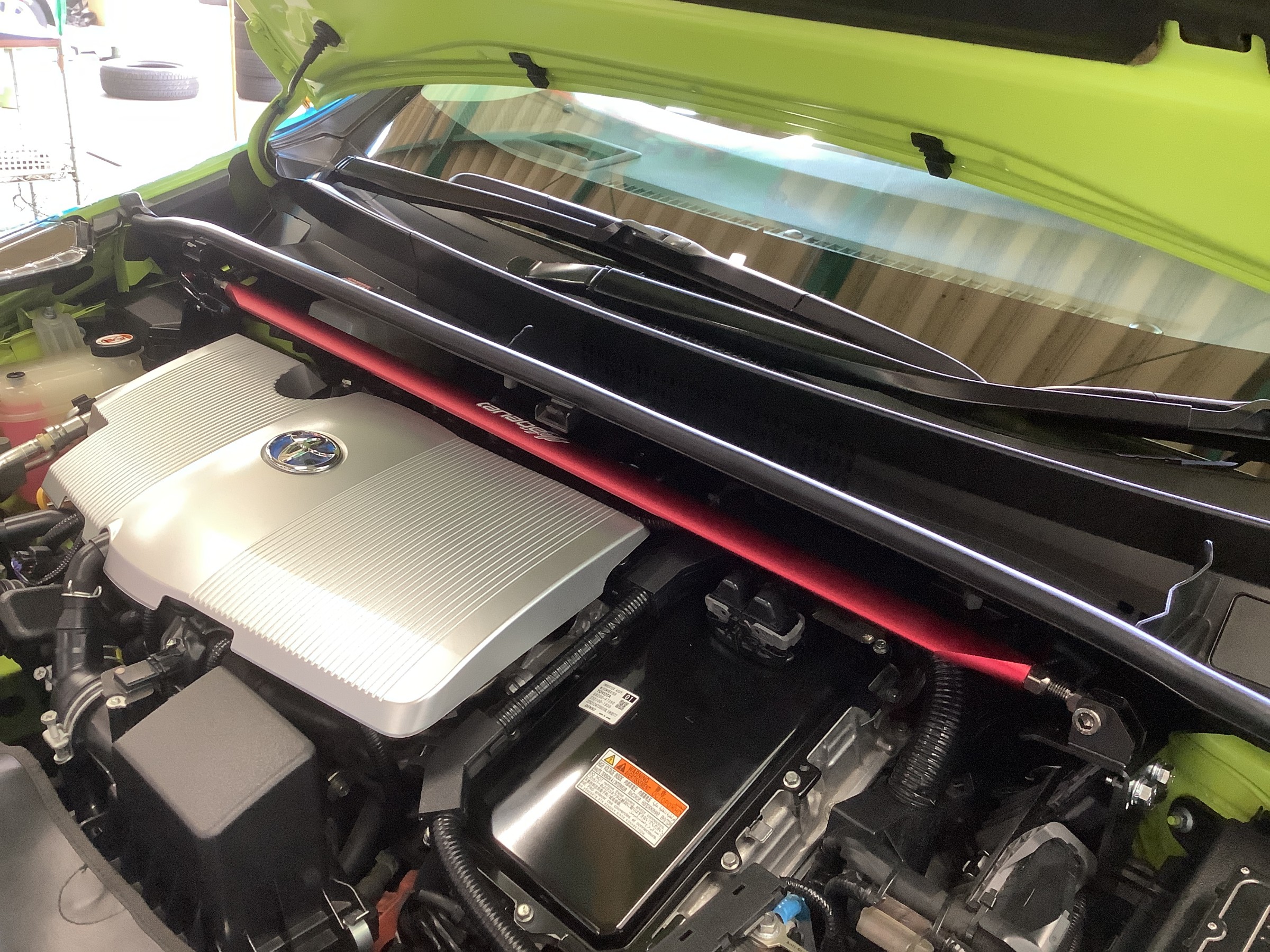トヨタZVW51型プリウス、フロントストラットタワーバーのお取り付け!