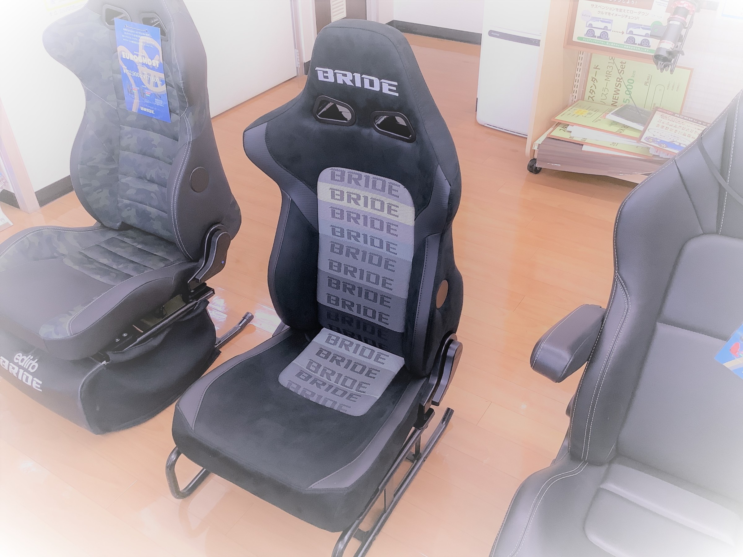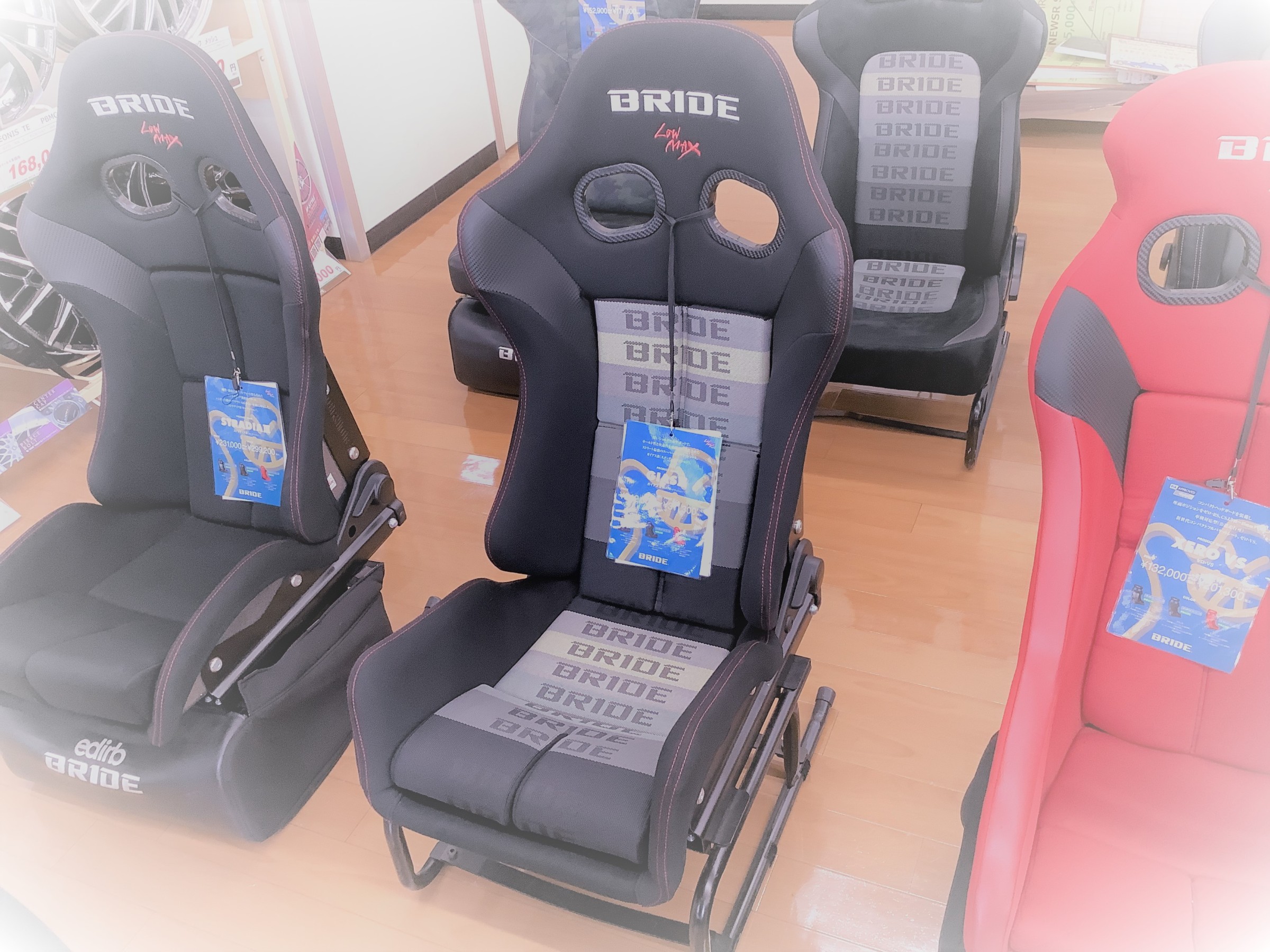 只今タイヤ館八千代店では、~6/20までの期間限定で9脚のBRIDEシートを展示中です!(っ´∀`)っ