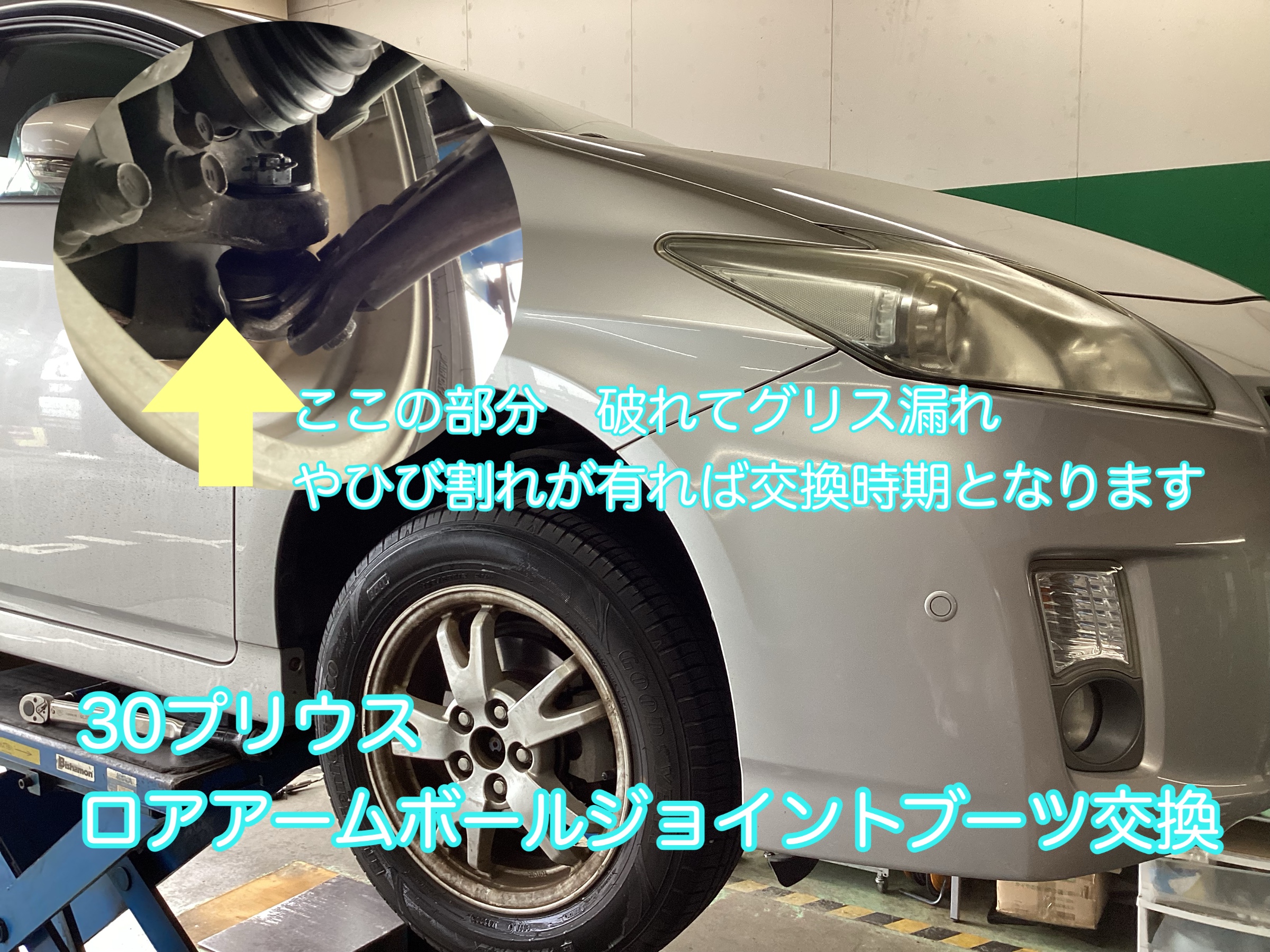 ロアアーム ボールジョイントブーツ交換 プリウス タイヤ館八千代
