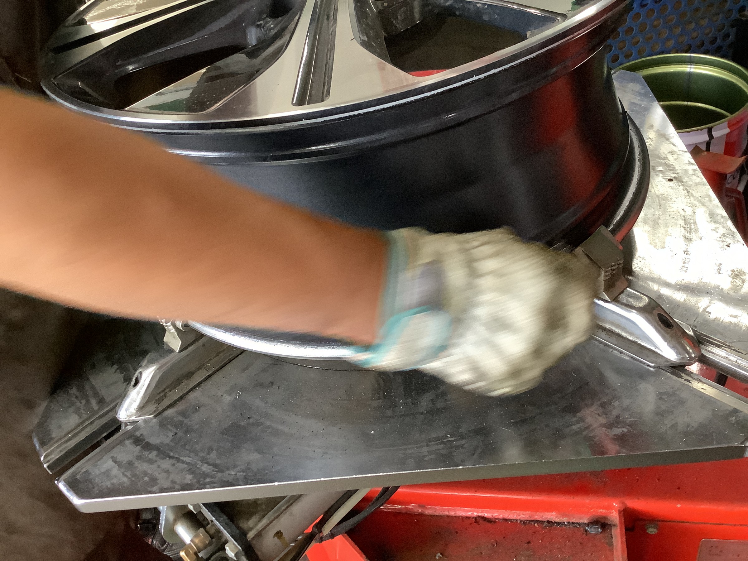 古いタイヤを剝がしたらホイールとタイヤの接触部にこびりついてしまった汚れ(エア漏れの原因になる汚れ)を磨き落として、