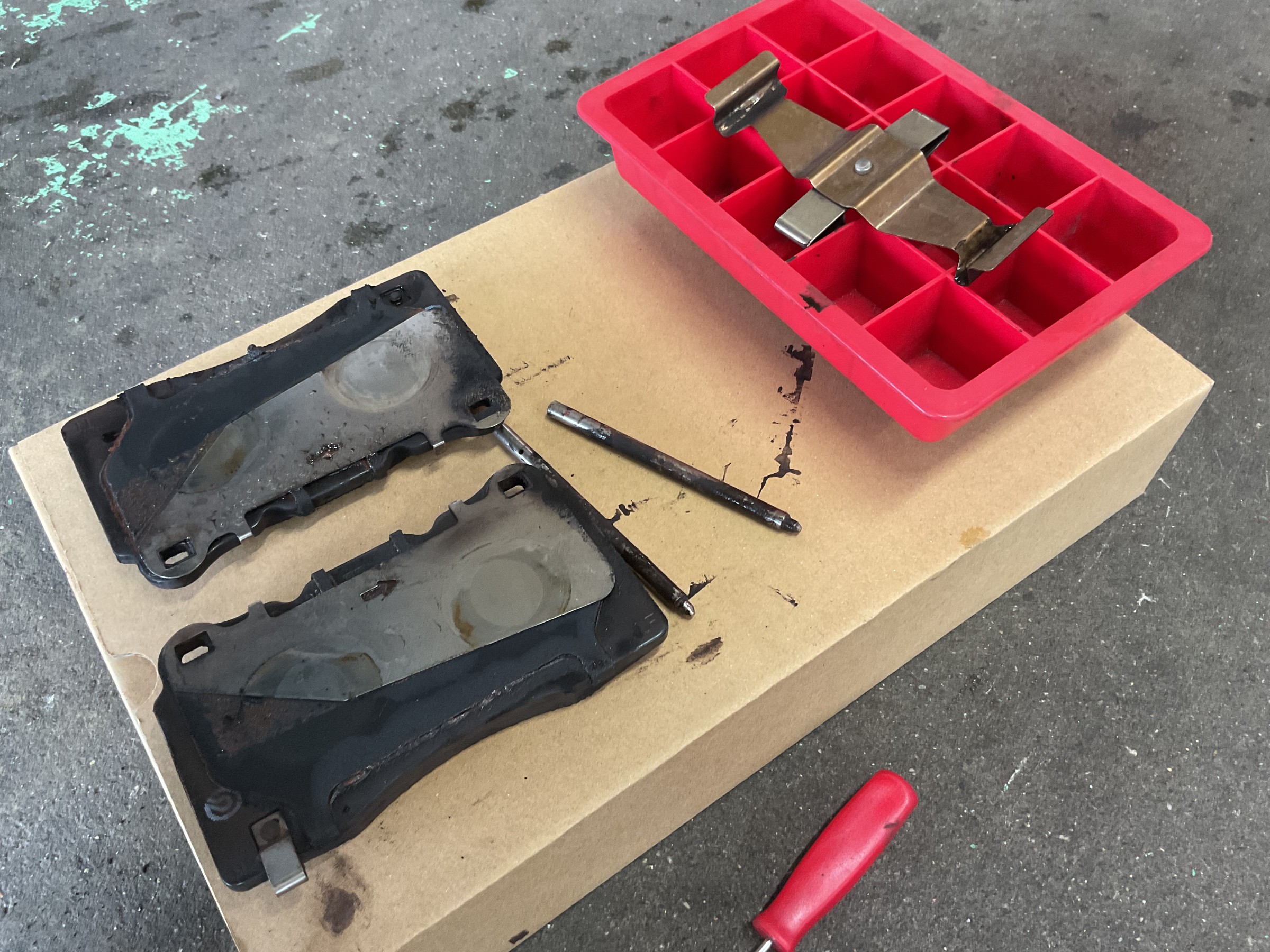 掃除しないままでグリスを上塗りしてササッと短時間でパッド交換する整備工場さんも多いですが、ボクが作業する際は清掃してから組み上げたいのでハッキリ言って時間はかかります(・_・;)