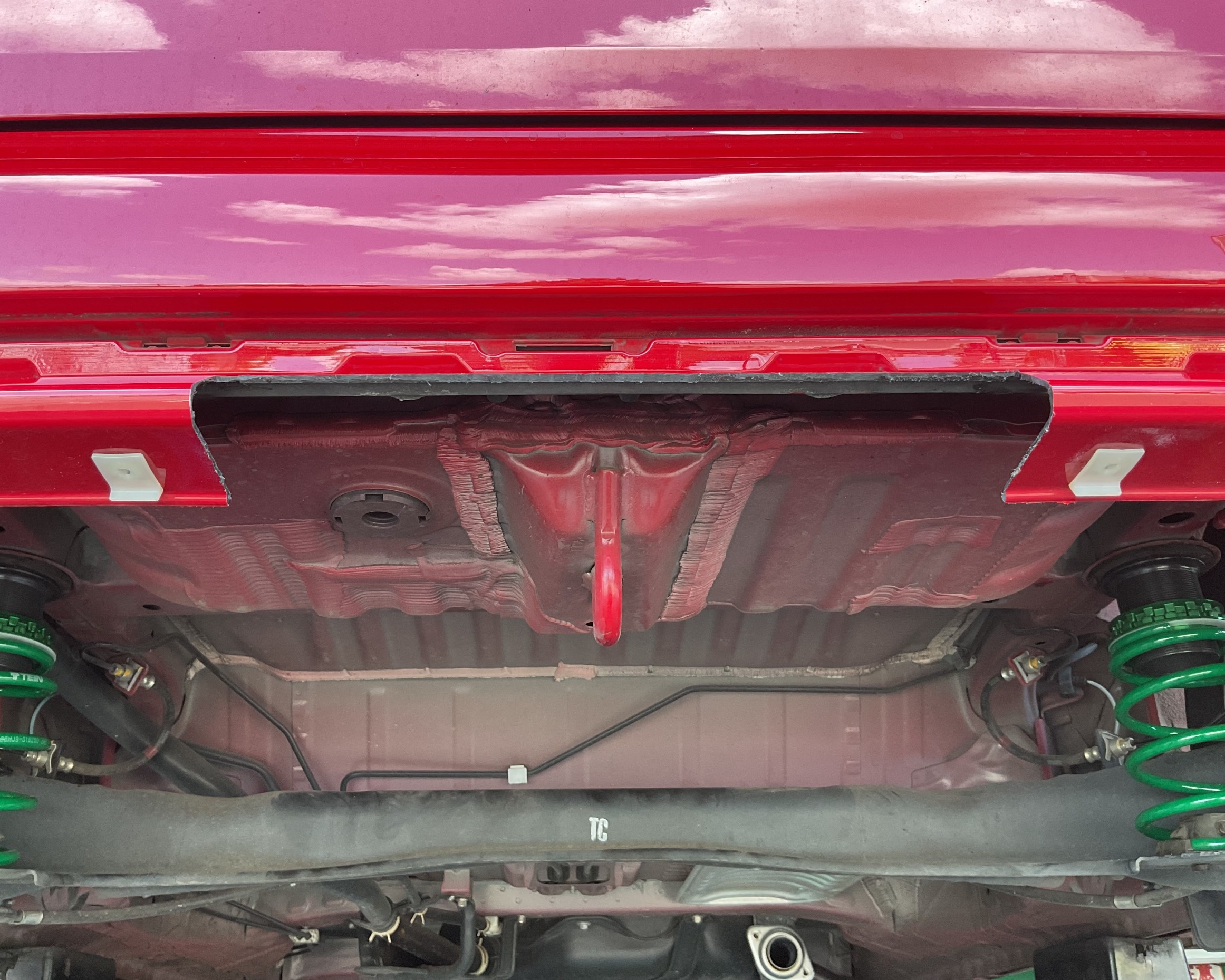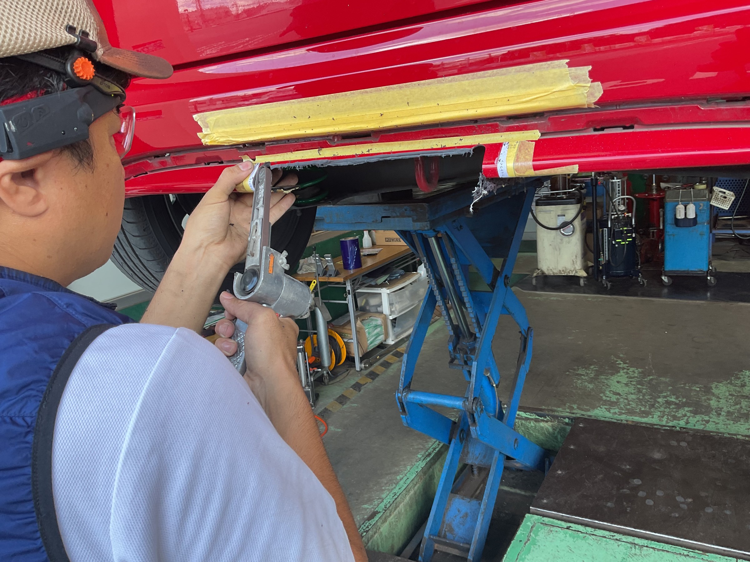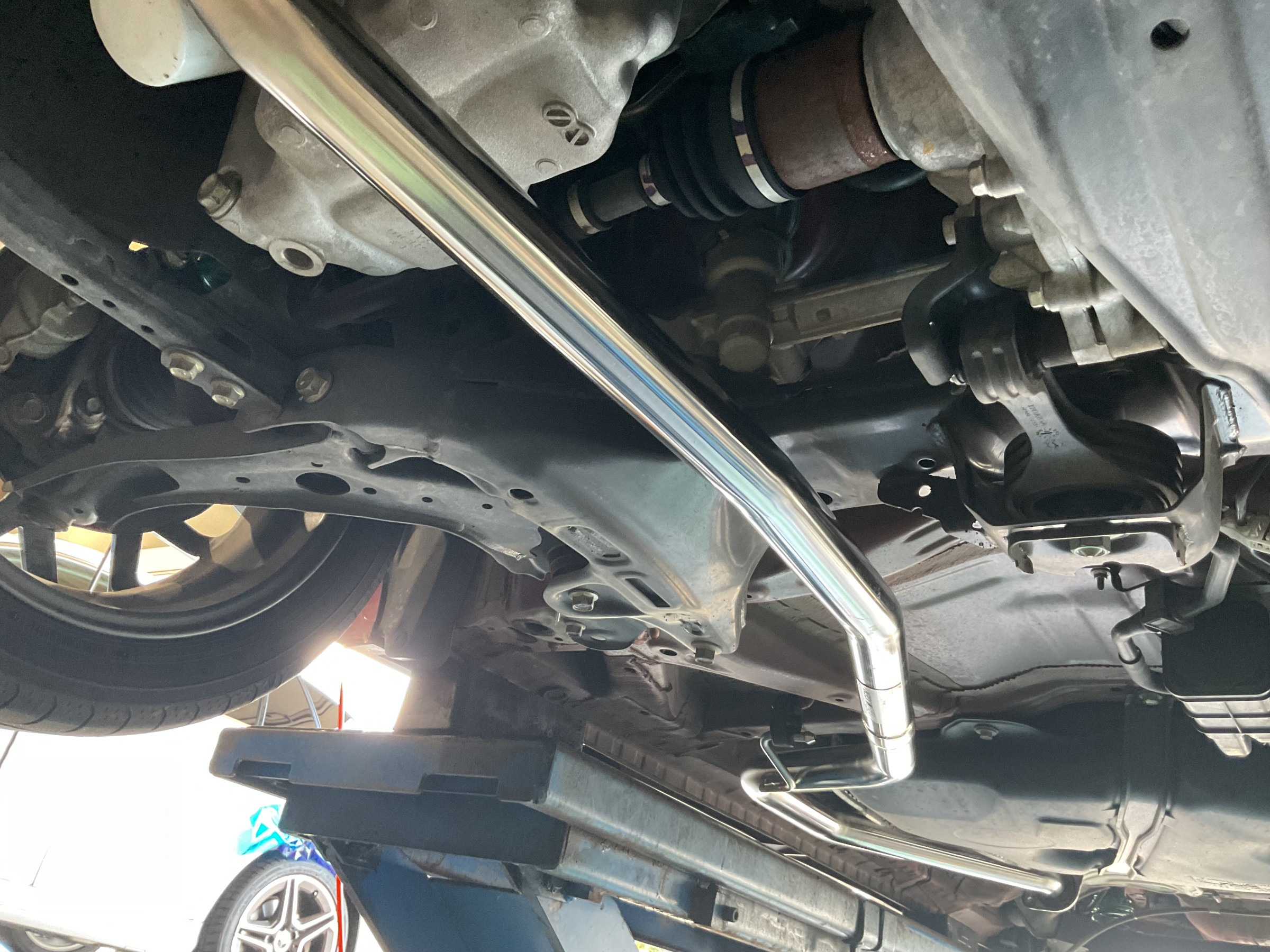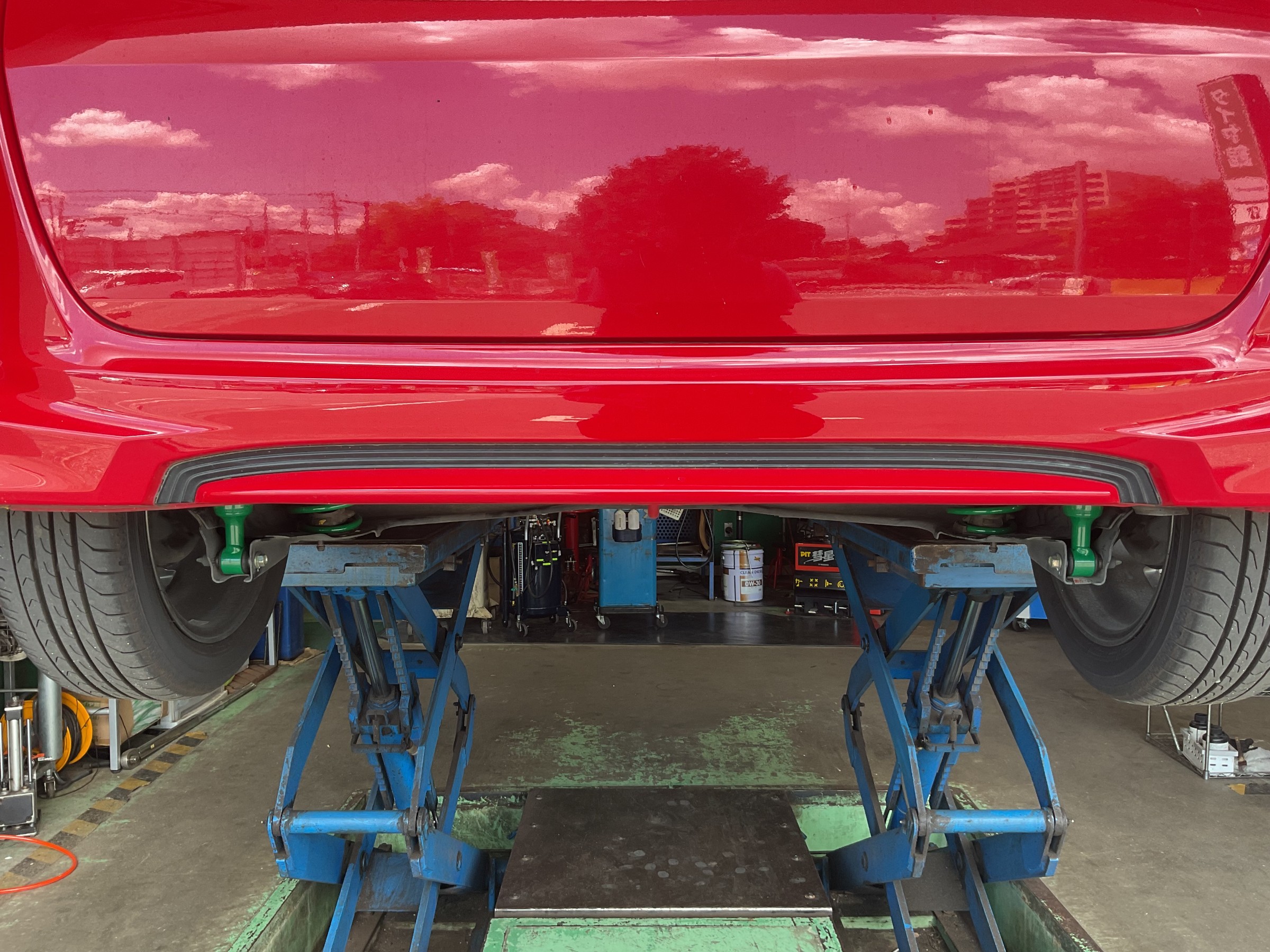ローダウンしているからか、ショックを外してトーションビームを下げないとマフラーが入りませんでした(;^ω^)