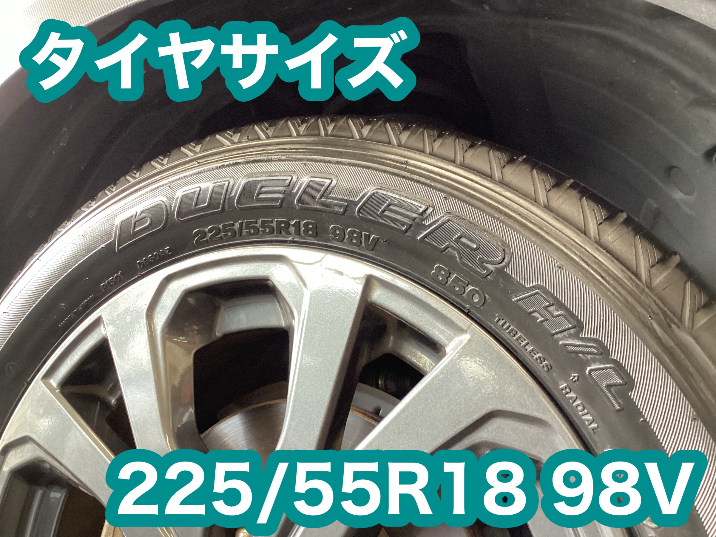 タイヤサイズは225/55R18 98Vです。