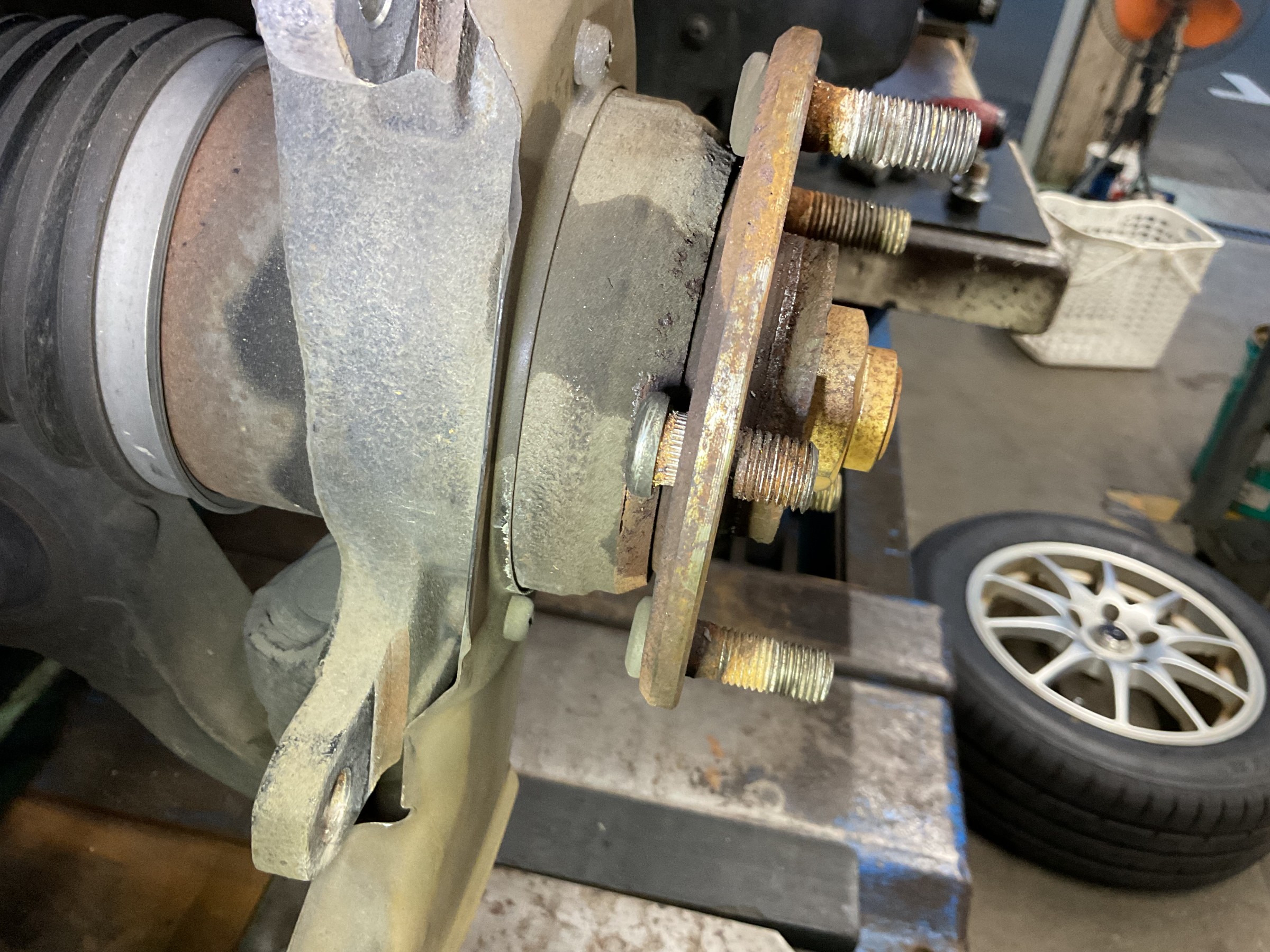 肝心の交換するしかないハブボルトはオデッセイの場合は簡単にはいかず、ハブベアリングをナックルから抜かなければ交換できないので時間も料金もかかる作業となりました(・_・;)部品が揃い次第交換させていただこうと思います!