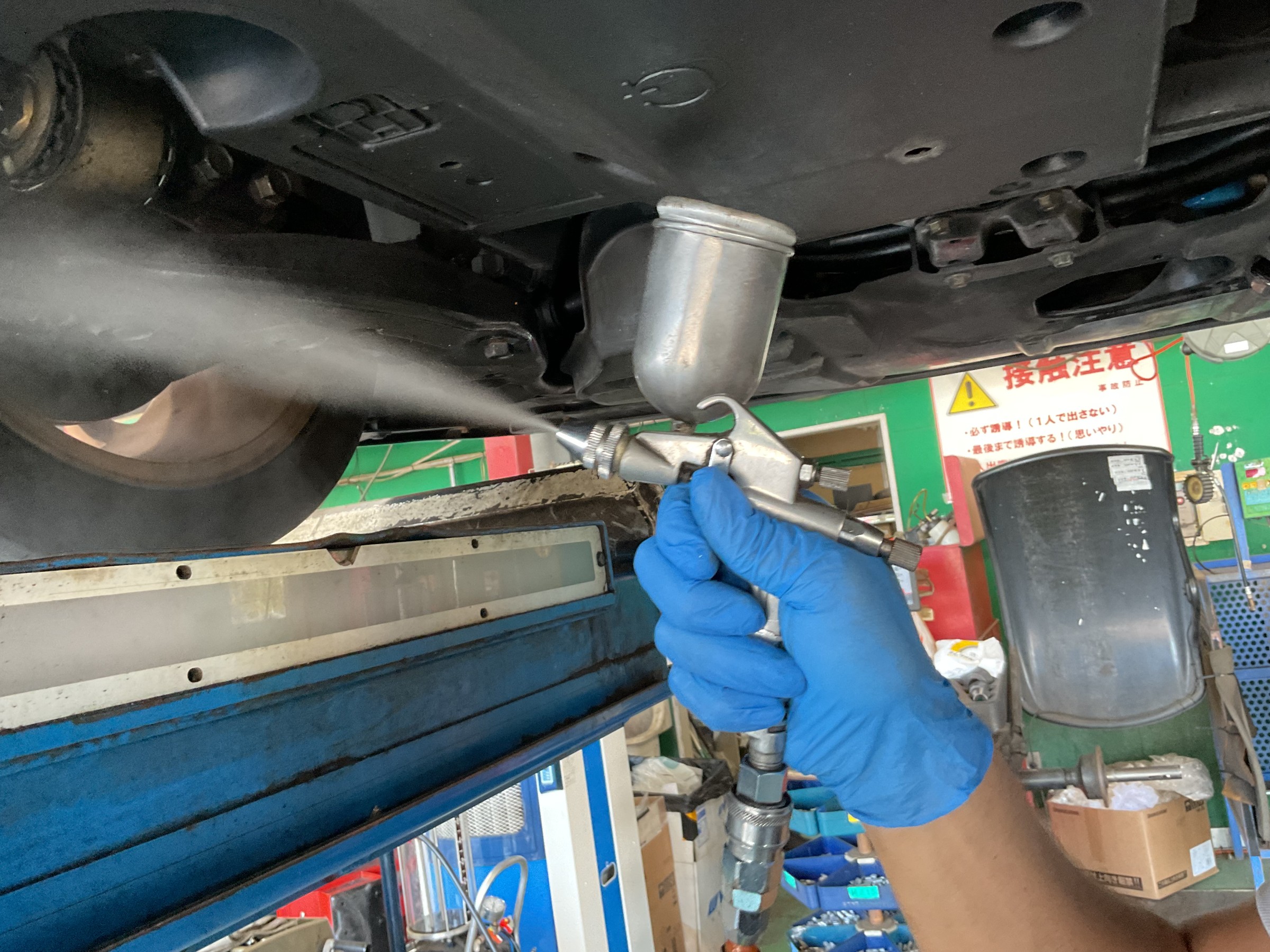 下回りを透明なコーティングで保護し、塩分が付着すると化学変化を起こして無害化してくれるんです(σ゚∀゚)σ 高温になるマフラーや回転物のドライブシャフトやプロペラシャフトにも施工可能です!