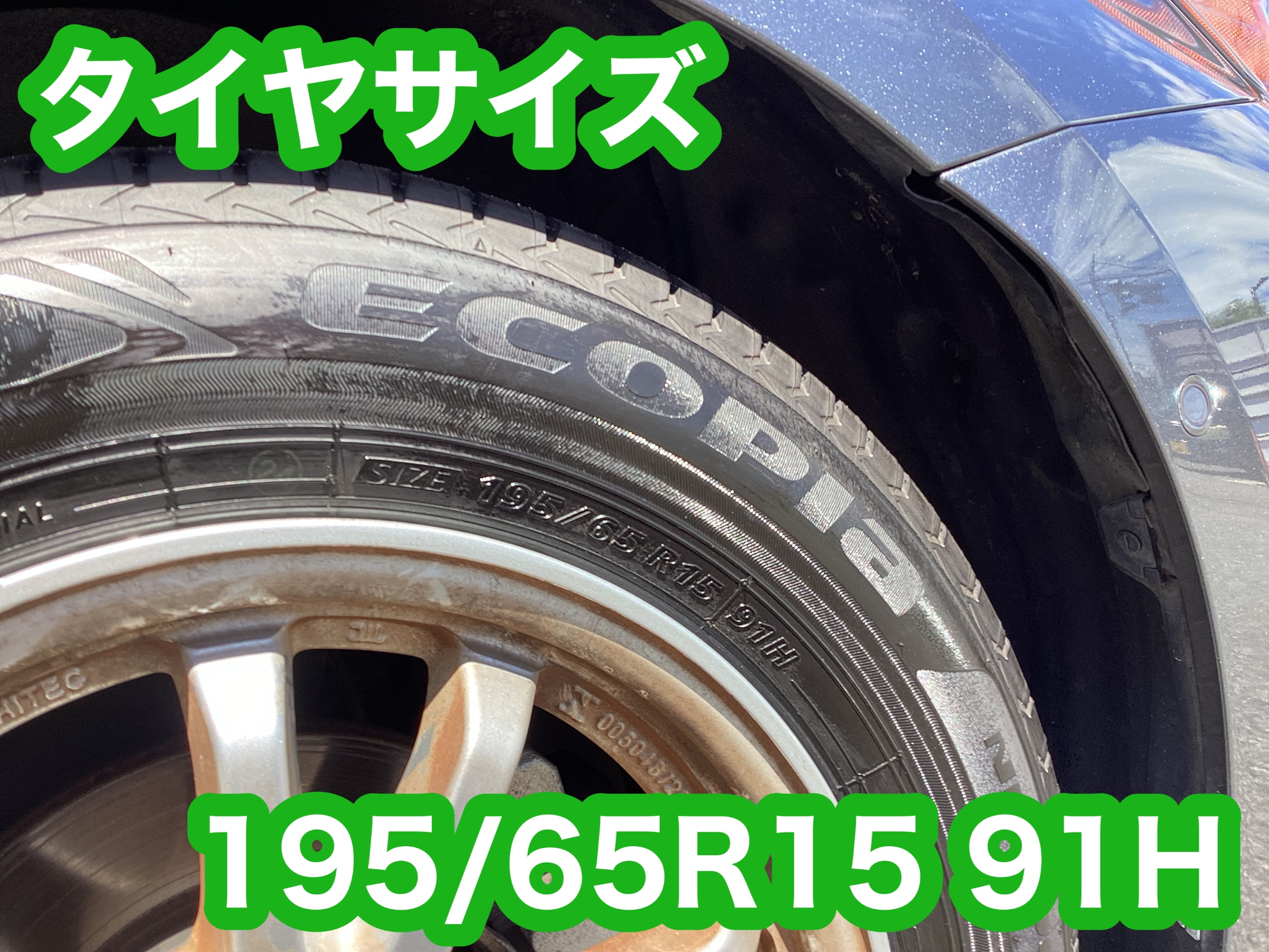 タイヤサイズは195/65R15 91Hです。