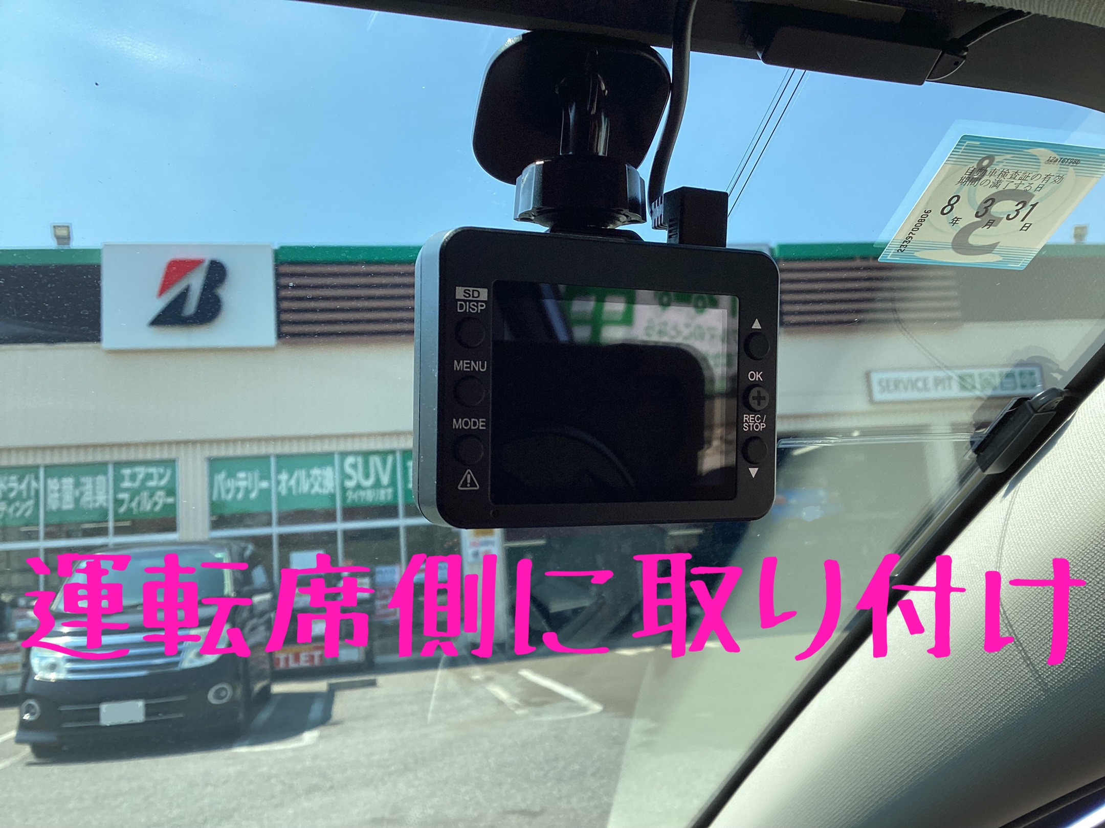 取り付け場所は、アイサイトカメラと操作性を考慮して運転席側右寄りにしました。