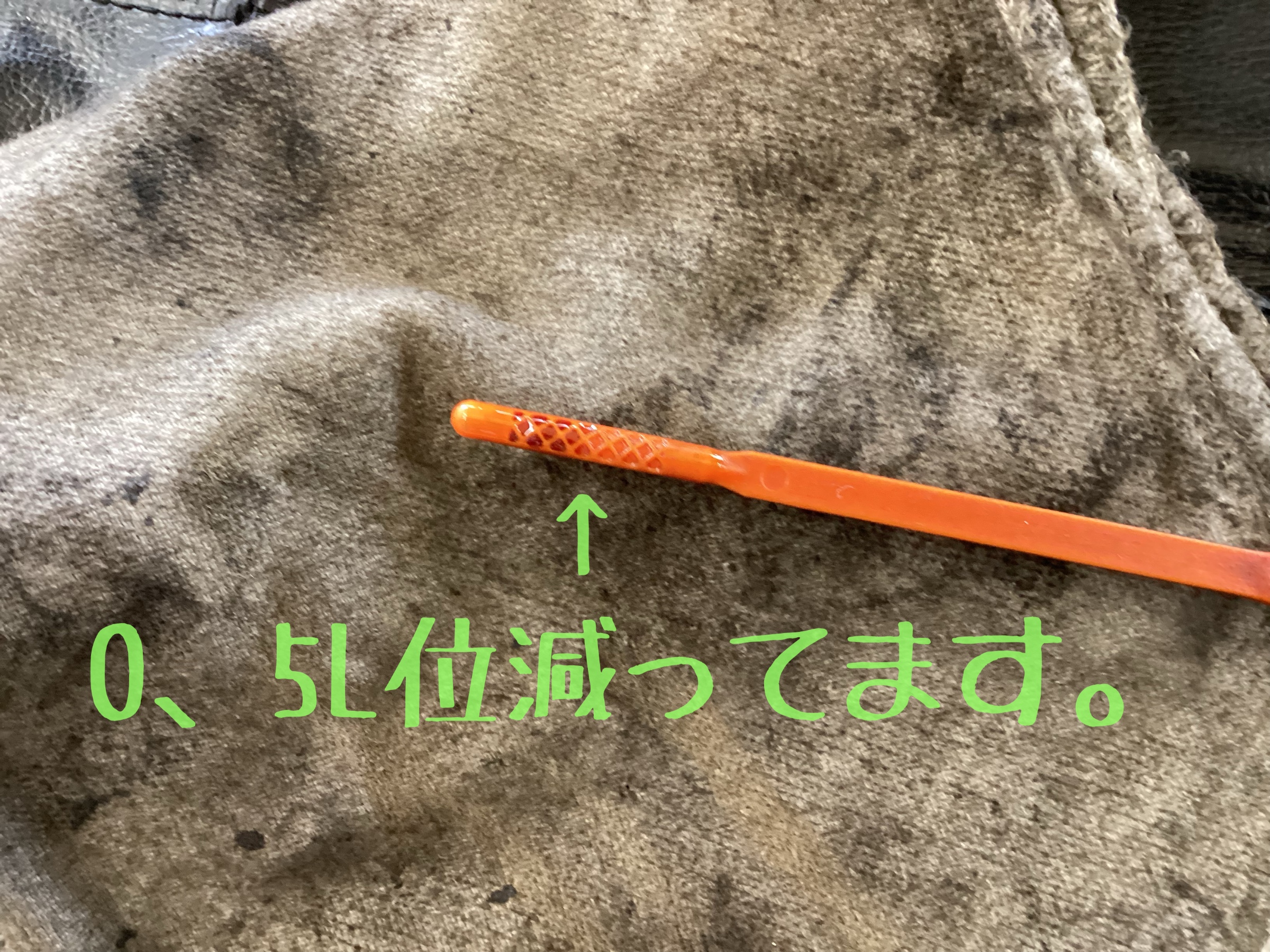 ゲージに付いたオイルが見づらいのは汚れたオイルをほぼ残らず吸い上げた証拠です。