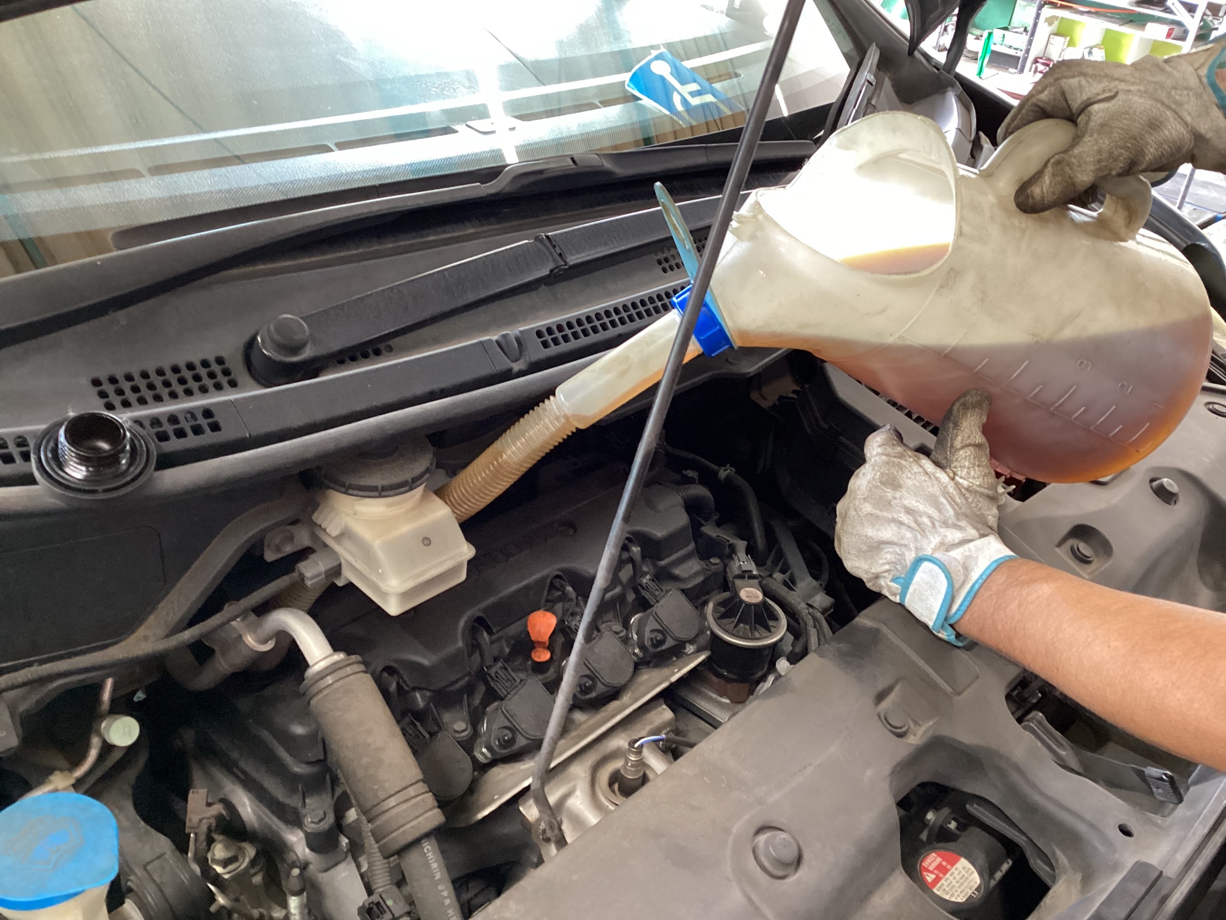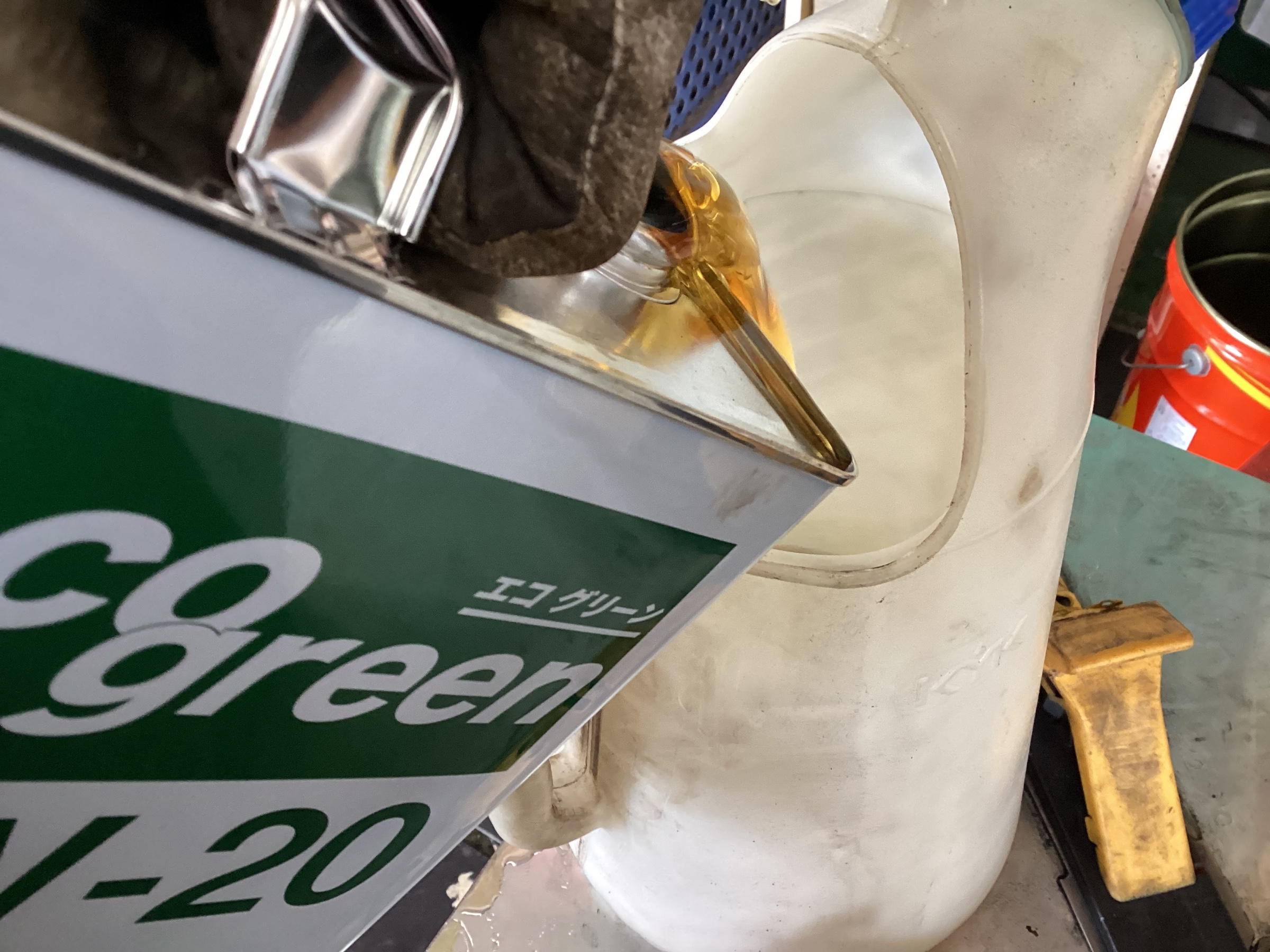 新油を入れてエンンジを回して漏れチェックしたら、油量を調整して終了です。