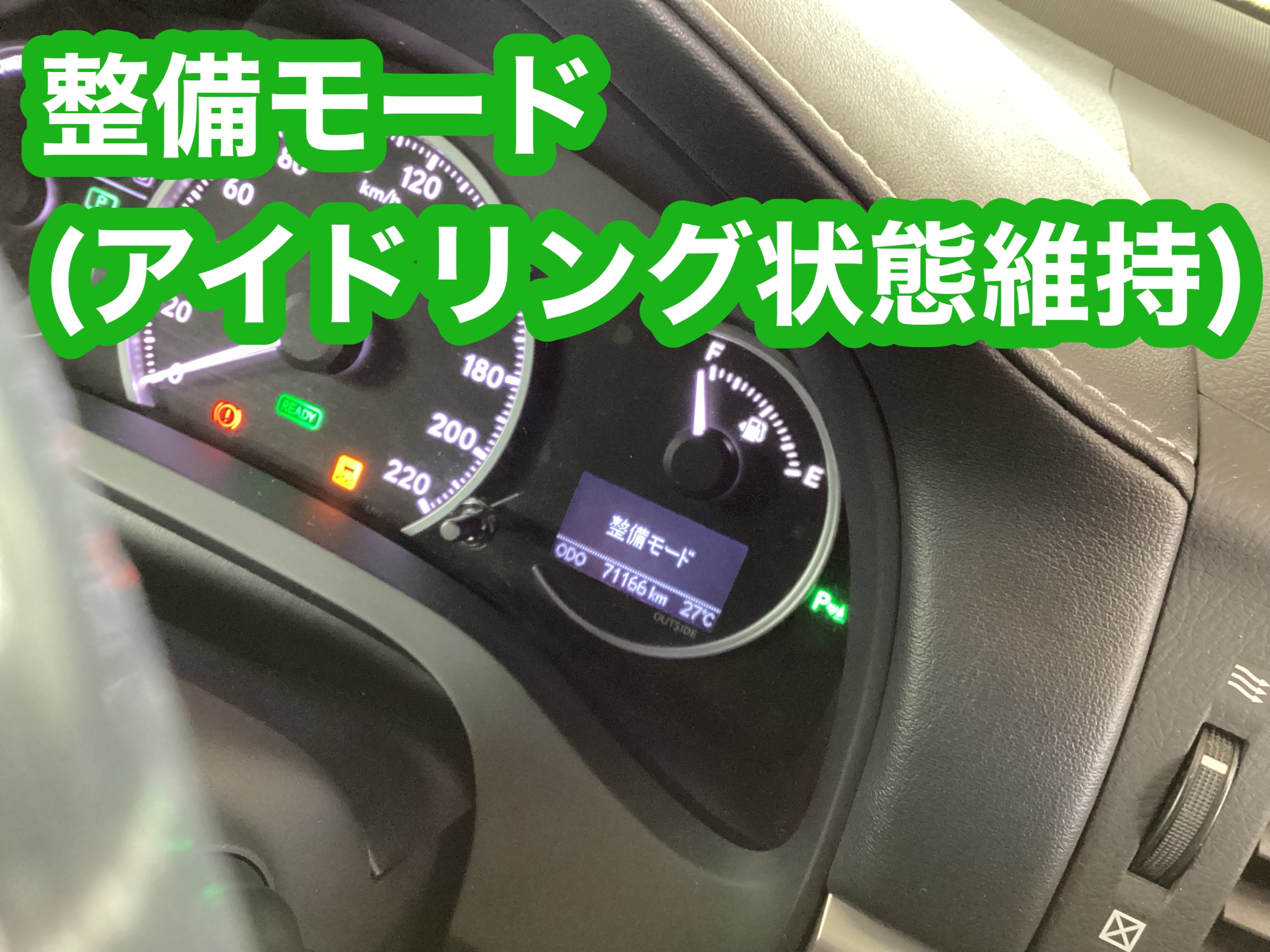 レクサス・CT200hはハイブリッド車なので通常ではエンジンが停止してしまいますから、フラッシング施工時やエンジンオイル交換後のオイル漏れ確認などでアイドリング状態を維持するときには整備モードを使用します。