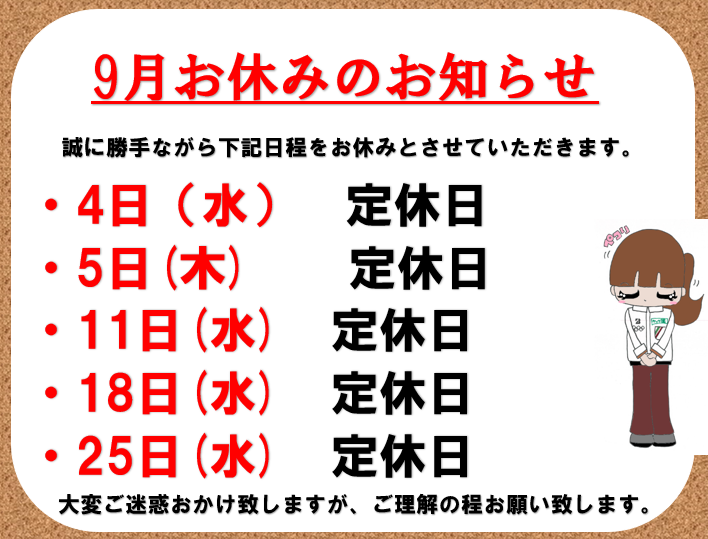 【お知らせ】定休日のご案内 ポスト 2024年9月18日 皆様、こんにちは(^^)/ ホームページをご覧いただきありがとうございます。 当店定休日のご案内です。 9月18日(水)は、定休日となります。 ご利用のお客様におかれましては、ご迷惑おかけいたしますが、 何卒ご理解ご了承の程お願い申し上げます。 また、WEBからもご予約をお取り頂けますので、 是非ご利用ください。 タイヤ館 八千代 住所:276-0046千葉県八千代市大和田新田988-6 電話番号: 047-458-1777 相談予約 タイヤ点検・安全点検/タイヤ履き替え/オイル交換/その他ピット作業の予約