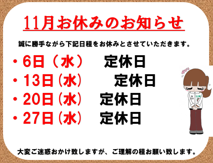 定休日のご案内です!! ポスト 2024年11月26日 皆様、こんにちは(^^)/ タイヤ館八千代のホームページをご覧いただき誠にありがとうございます。 当店定休日のご案内です! 11月27日(水)は、定休日となります。 ご利用のお客様に置かれましては、ご迷惑おかけいたしますが、 何卒ご理解ご了承の程お願い申し上げます。 ご予約は、WEBからもお取り頂けますので、 ぜひご利用ください(^_-)-☆ タイヤ館 八千代 住所:276-0046千葉県八千代市大和田新田988-6 電話番号: 047-458-1777 相談予約 タイヤ点検・安全点検/タイヤ履き替え/オイル交換/その他ピット作業の予約