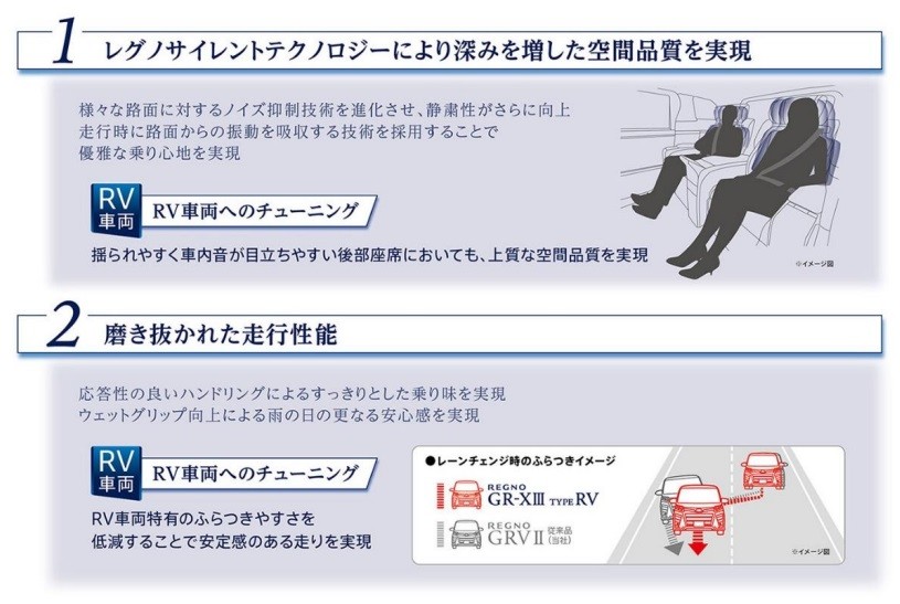 RV車両(ミニバン&コンパクトSUV)専用のブリヂストン最上級コンフォートタイヤ、REGNO GRVⅡの後継モデルとして