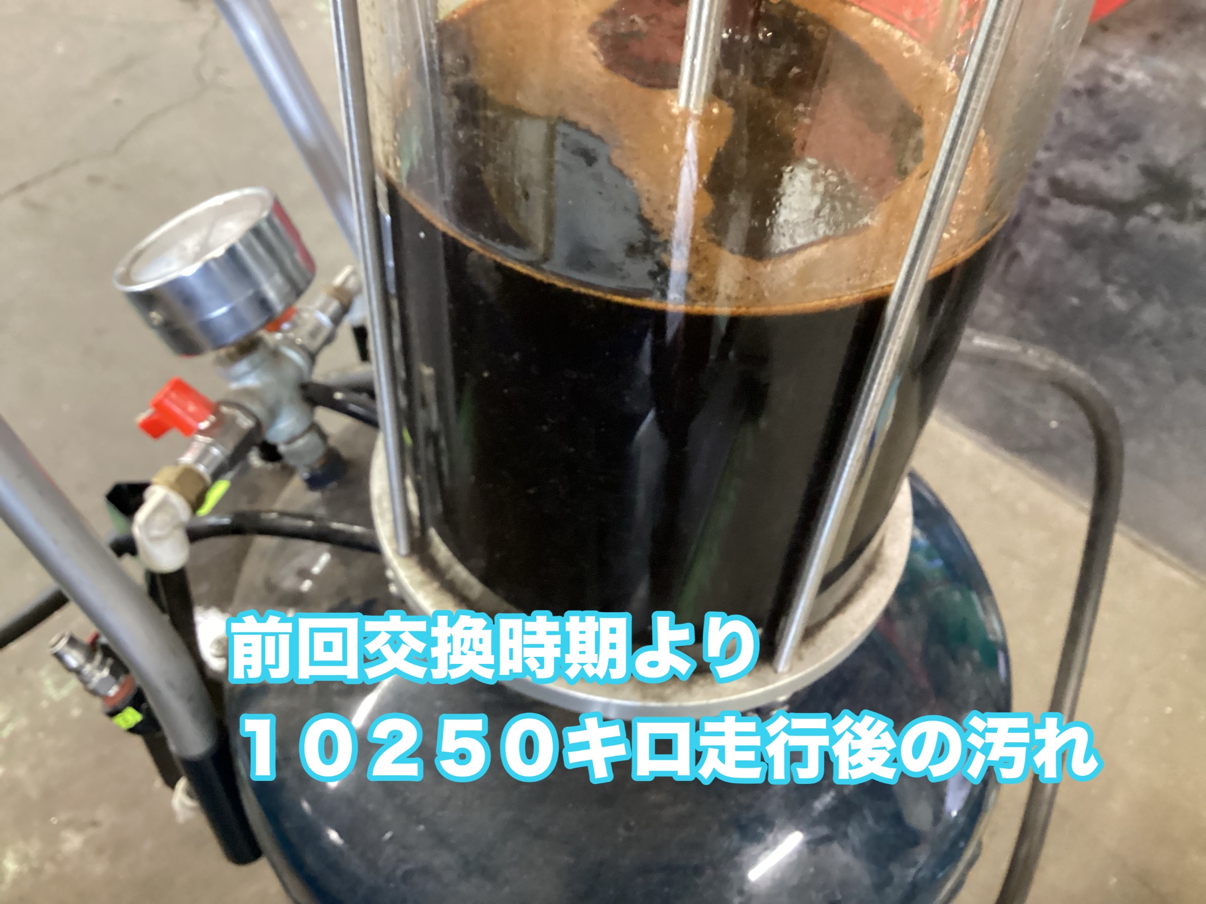上抜き機にてオイル交換実施 汚れが目で見えますね!1万キロ走行すると汚れと劣化も進みます