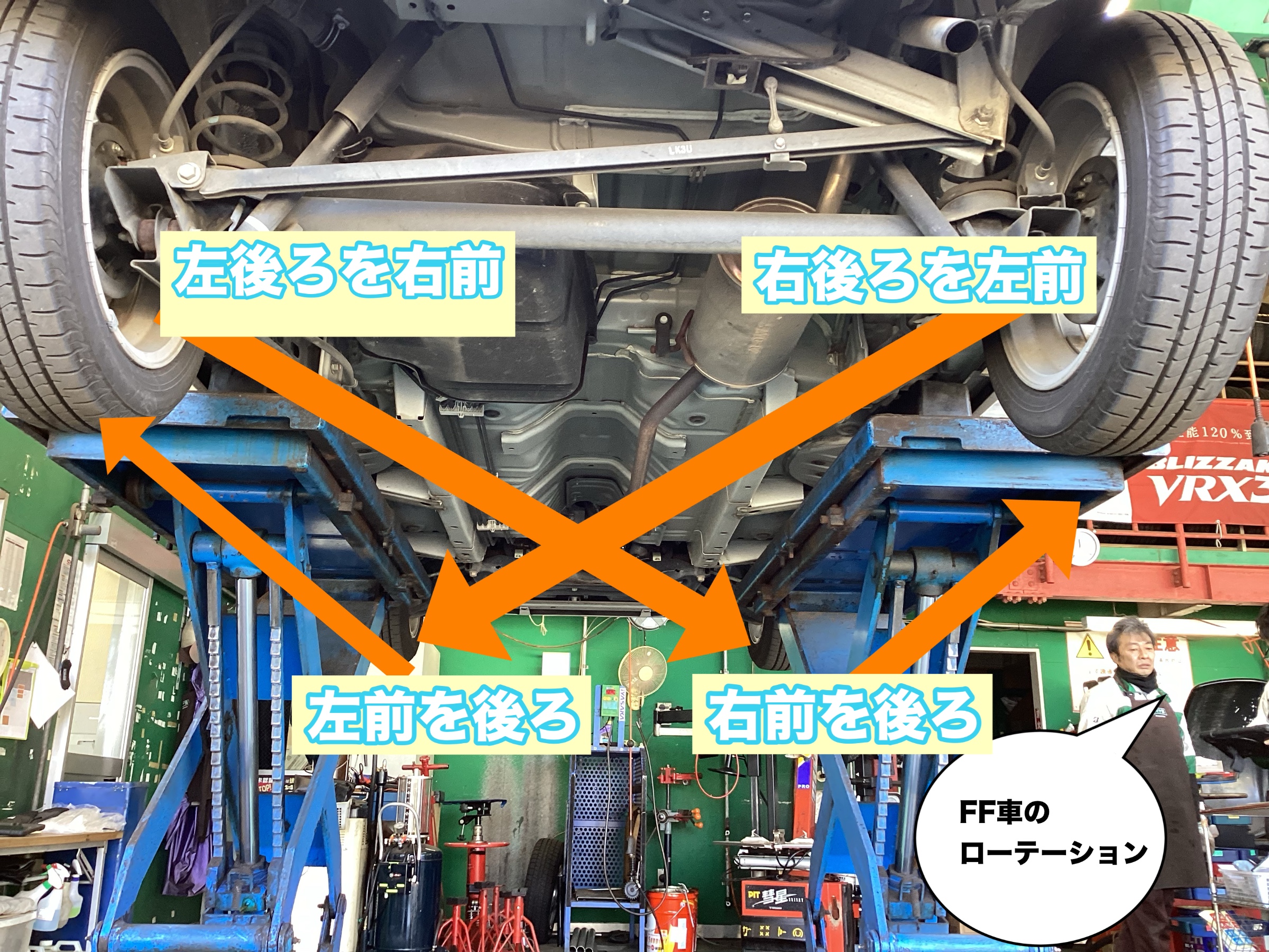 タイヤの位置交換ローテーション忘れていませんか?フロント駆動力FF車のお車は前のタイヤが