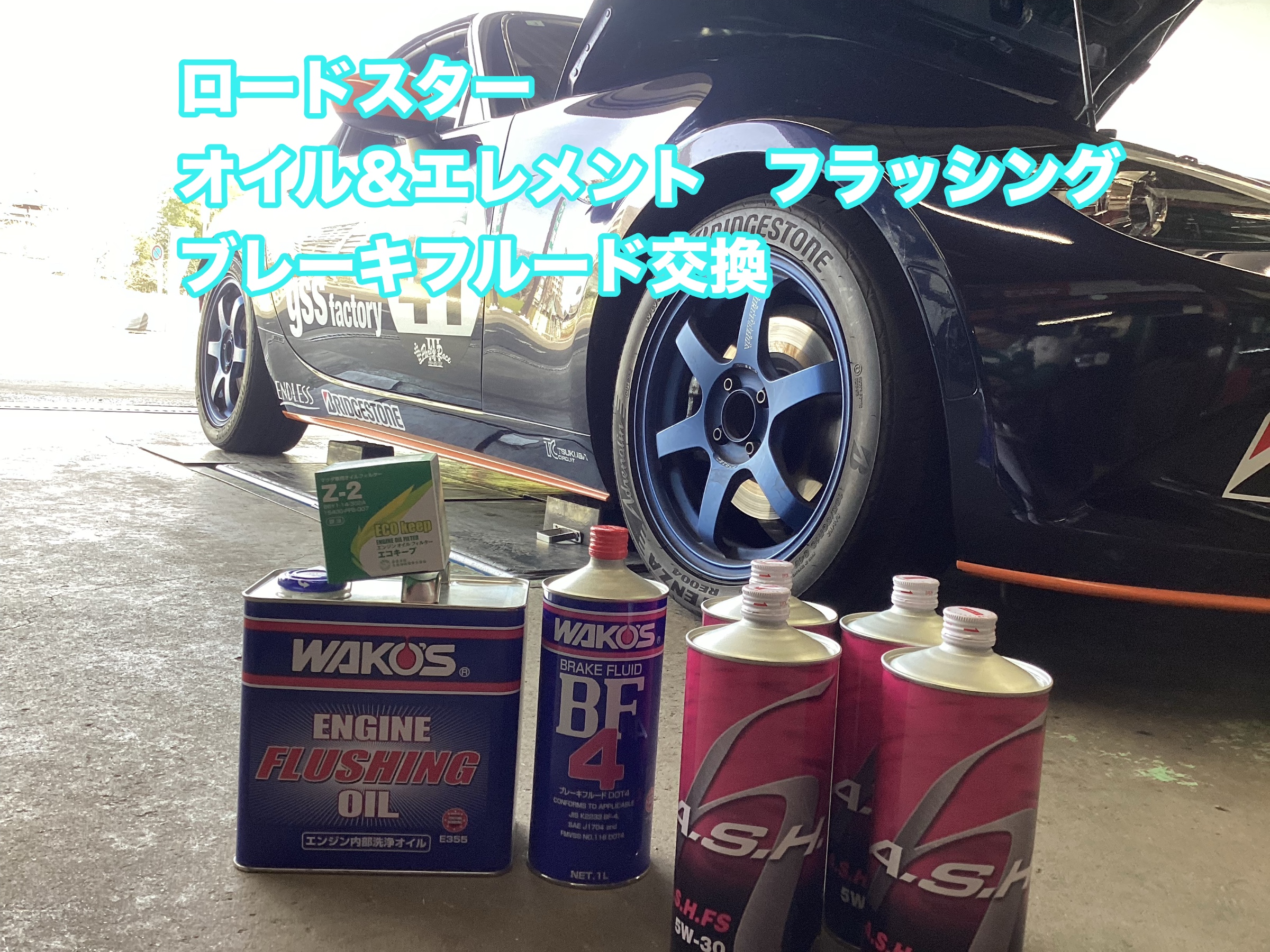 ロードスター A.S.Hオイル&エレメント フラッシング WAKO'Sブレーキフルードタイヤ館八千代