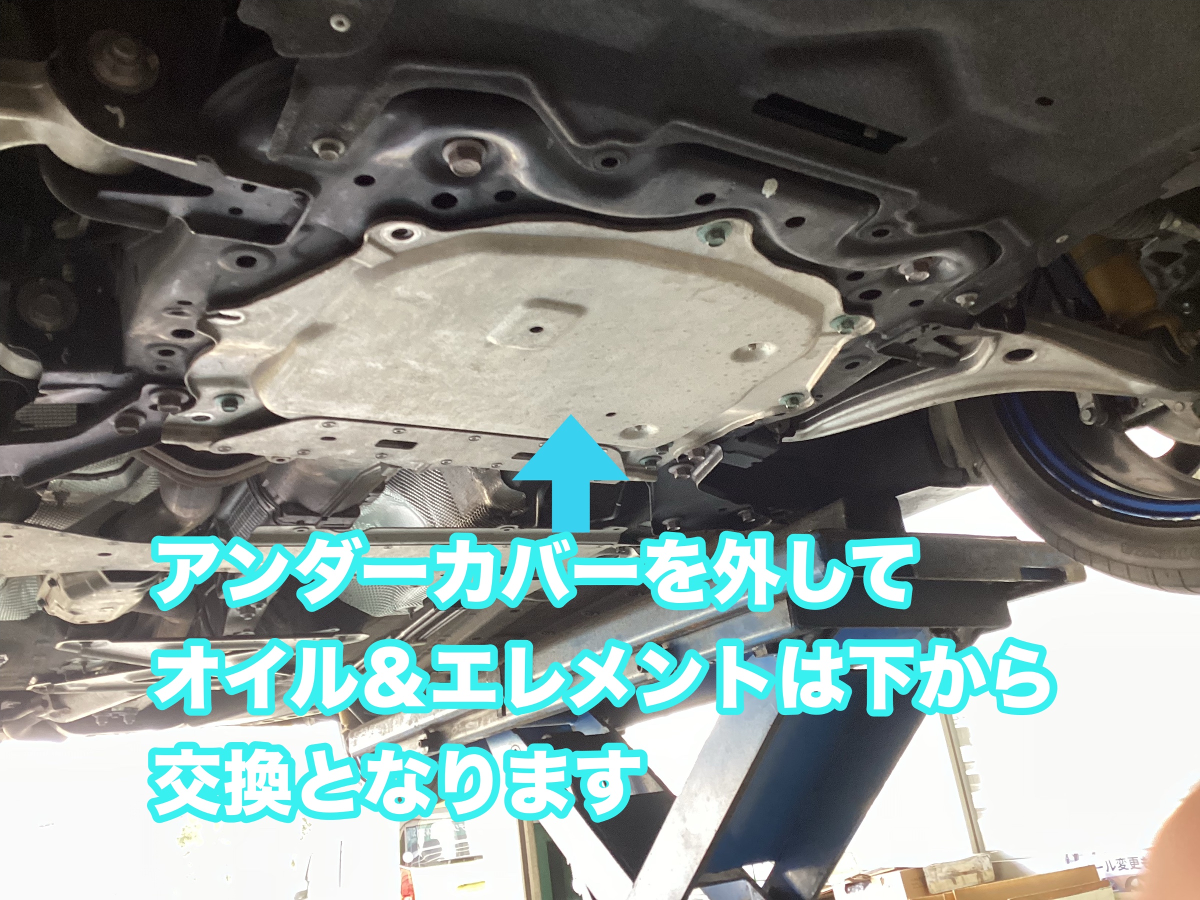 車種によりアンダーカバーを外さないとオイルエレメント・ドレーンボルトが外せないです