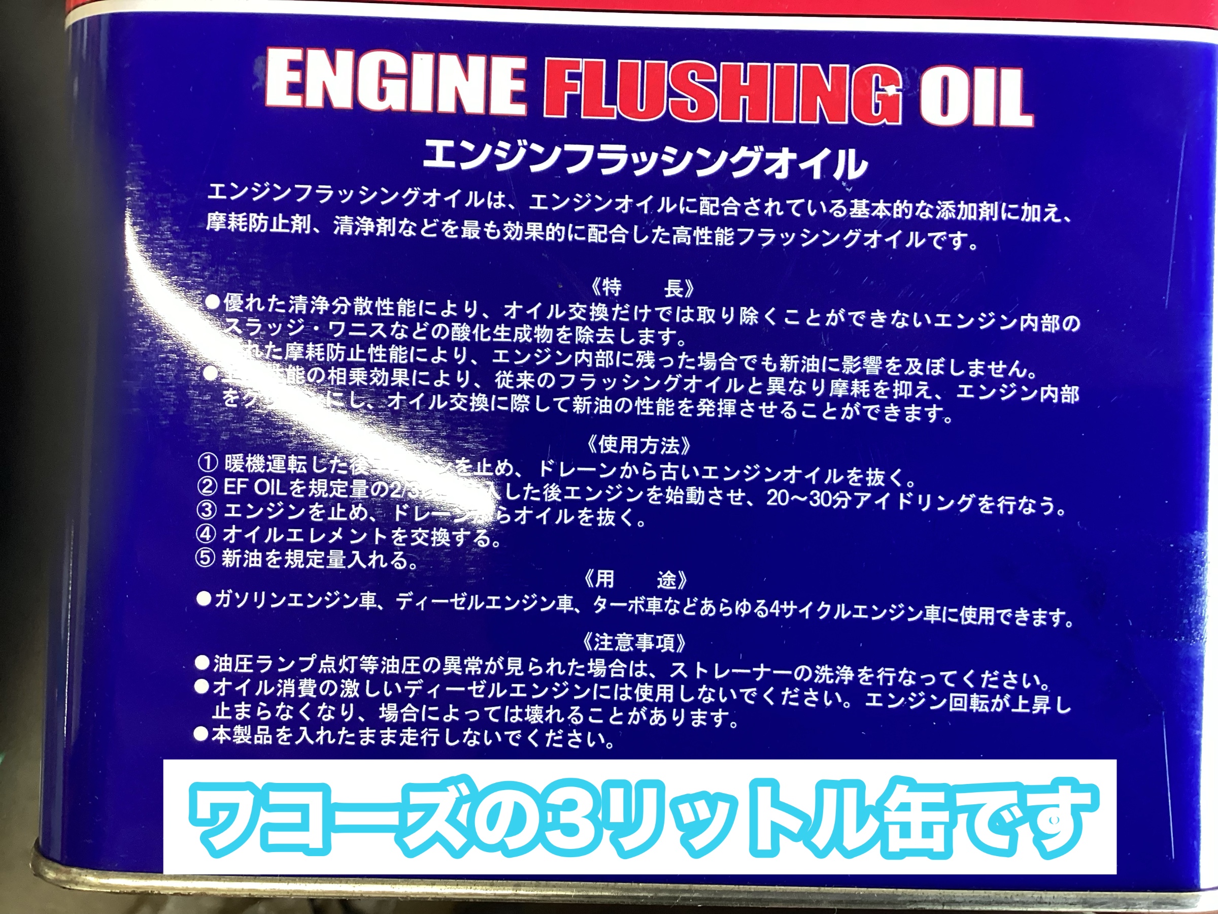- 規定量の2/3以上のEF OILを入れ、20~30分アイドリングして抜き取ります。