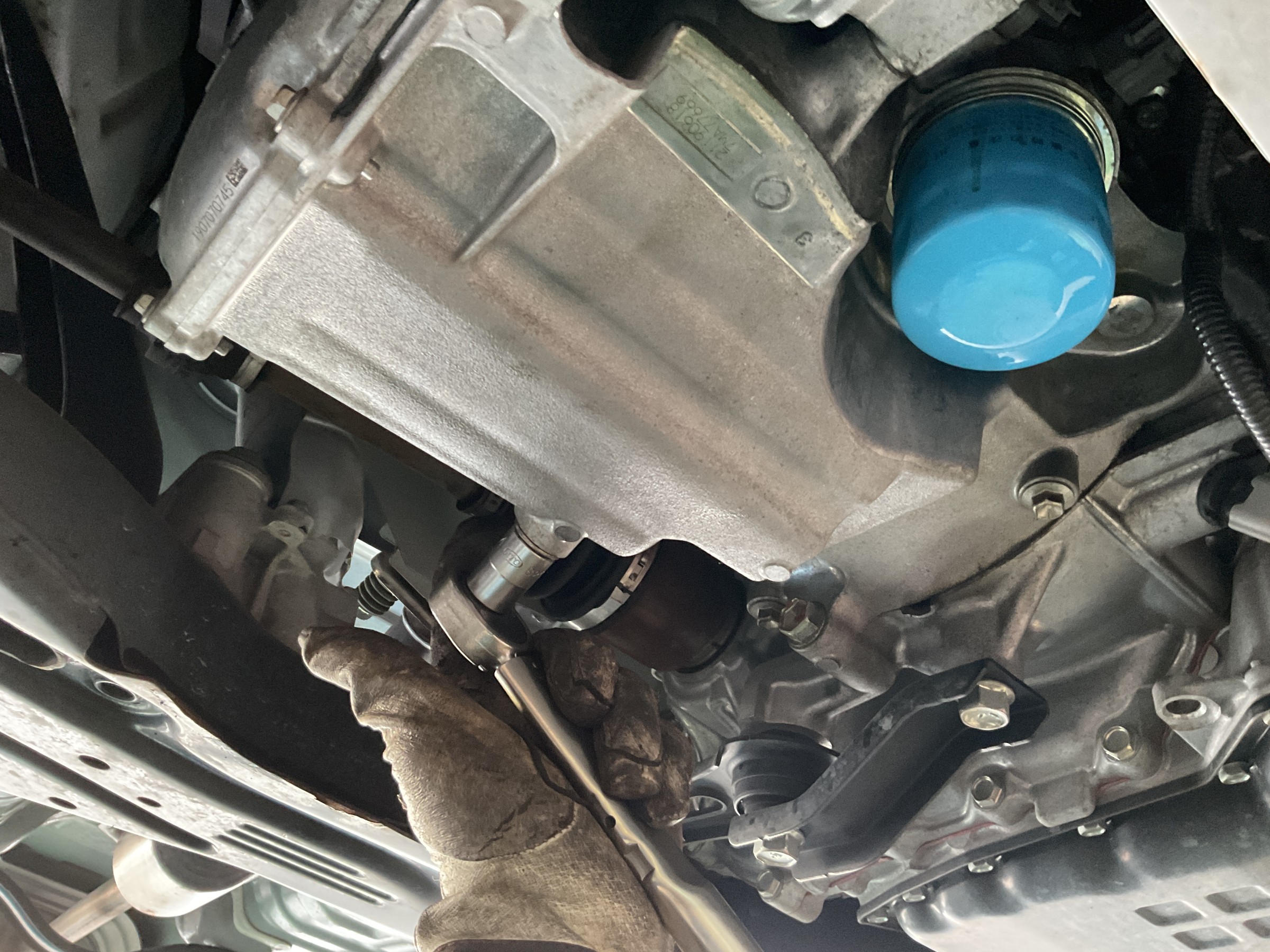 新しいフィルターに交換したらドレンボルト(エンジンオイルの排出口の蓋になるボルト)を、トルクレンチで既定の力加減で締め付け!