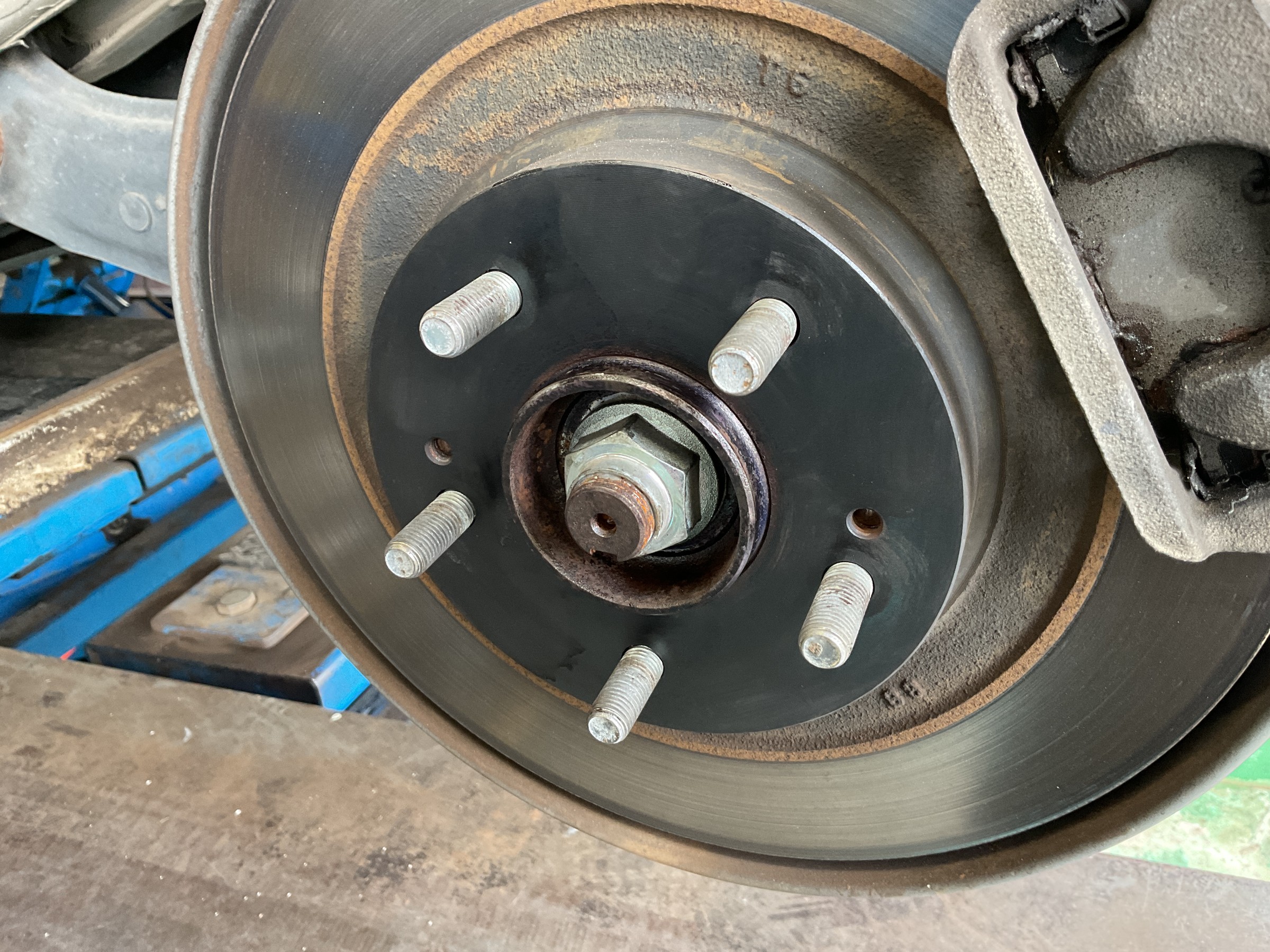 ホイールが装着されるハブ部はサビを取り除いて黒錆転換&防錆コーティングで保護させていただき、