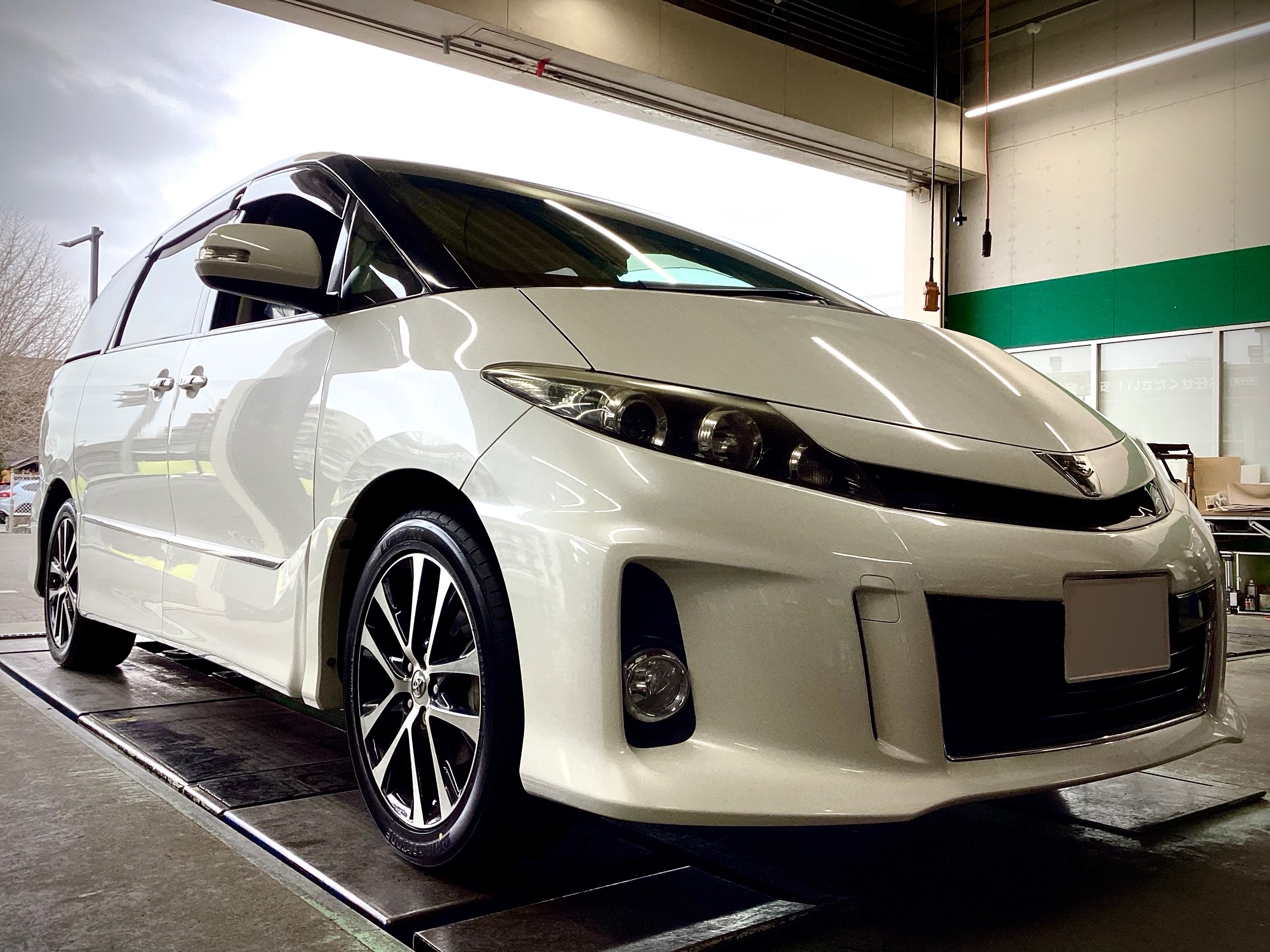 今回タイヤ交換する車両はこちらのトヨタ・エスティマです。