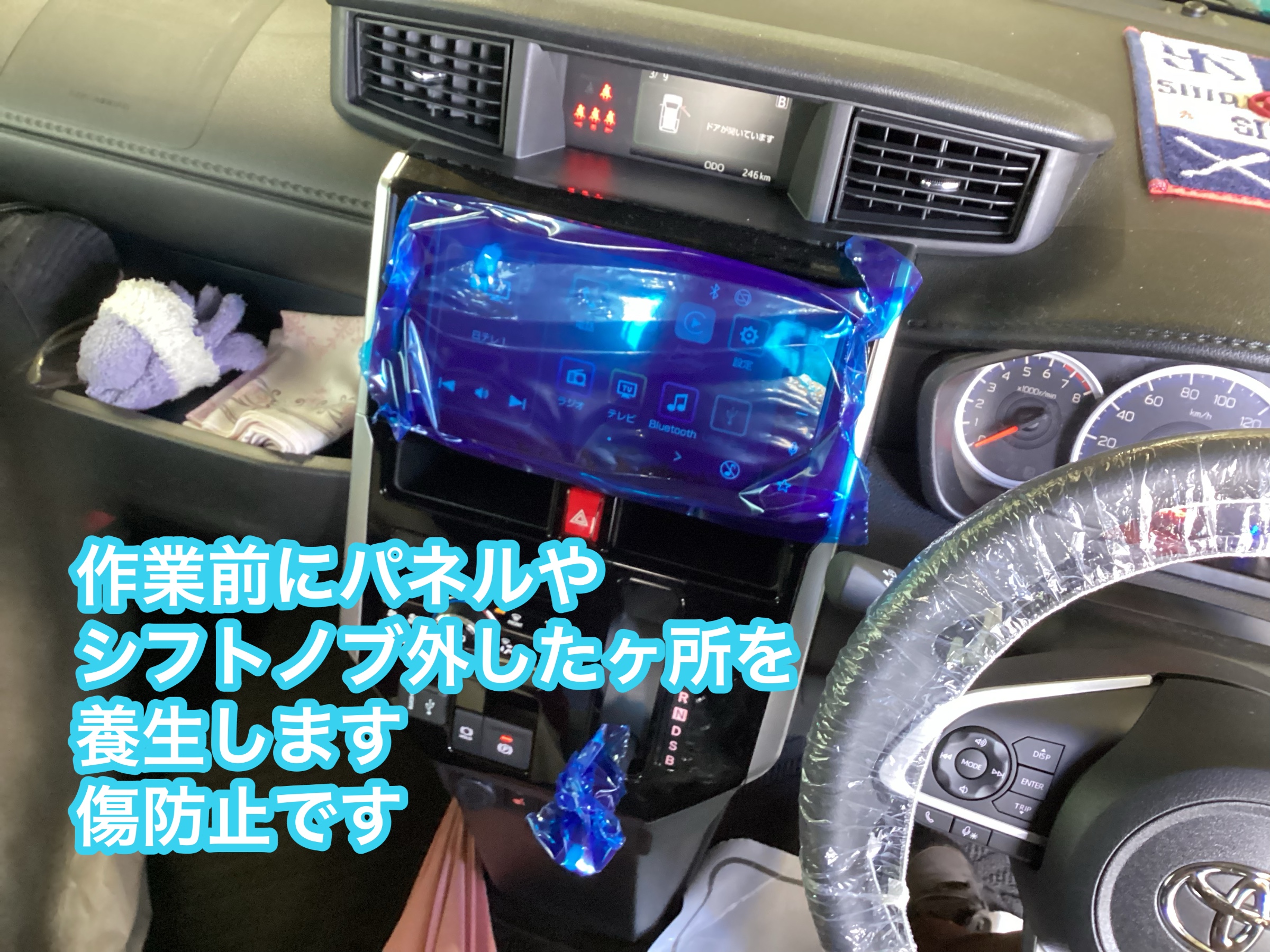 本日は助手席の方が退屈しないように、走行中にTVが見られるようにする取り付けKITを、トヨタルーミーへ