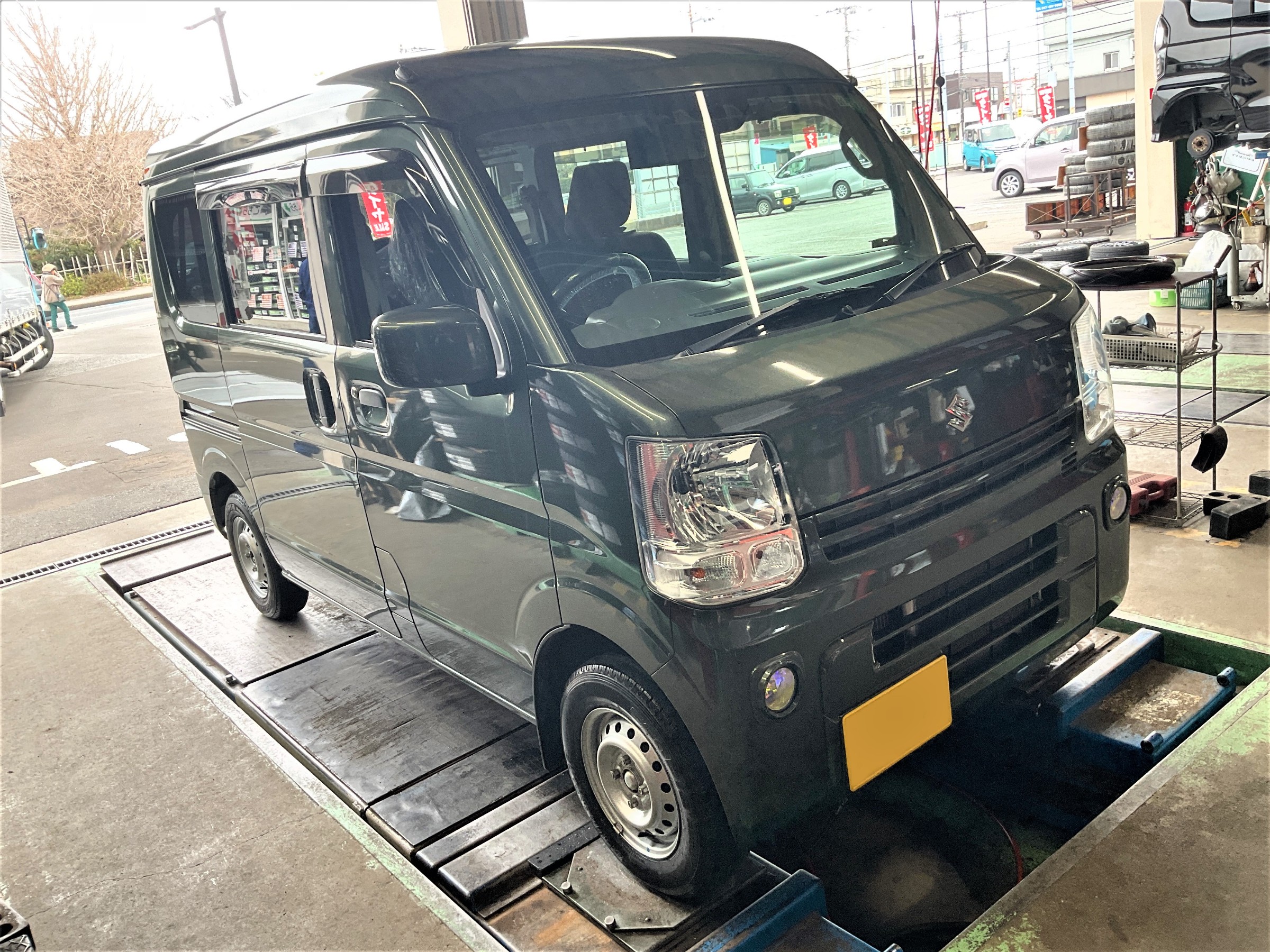 スズキDA17V型エブリイ、夏タイヤ新品交換&リアブレーキシュー交換!
