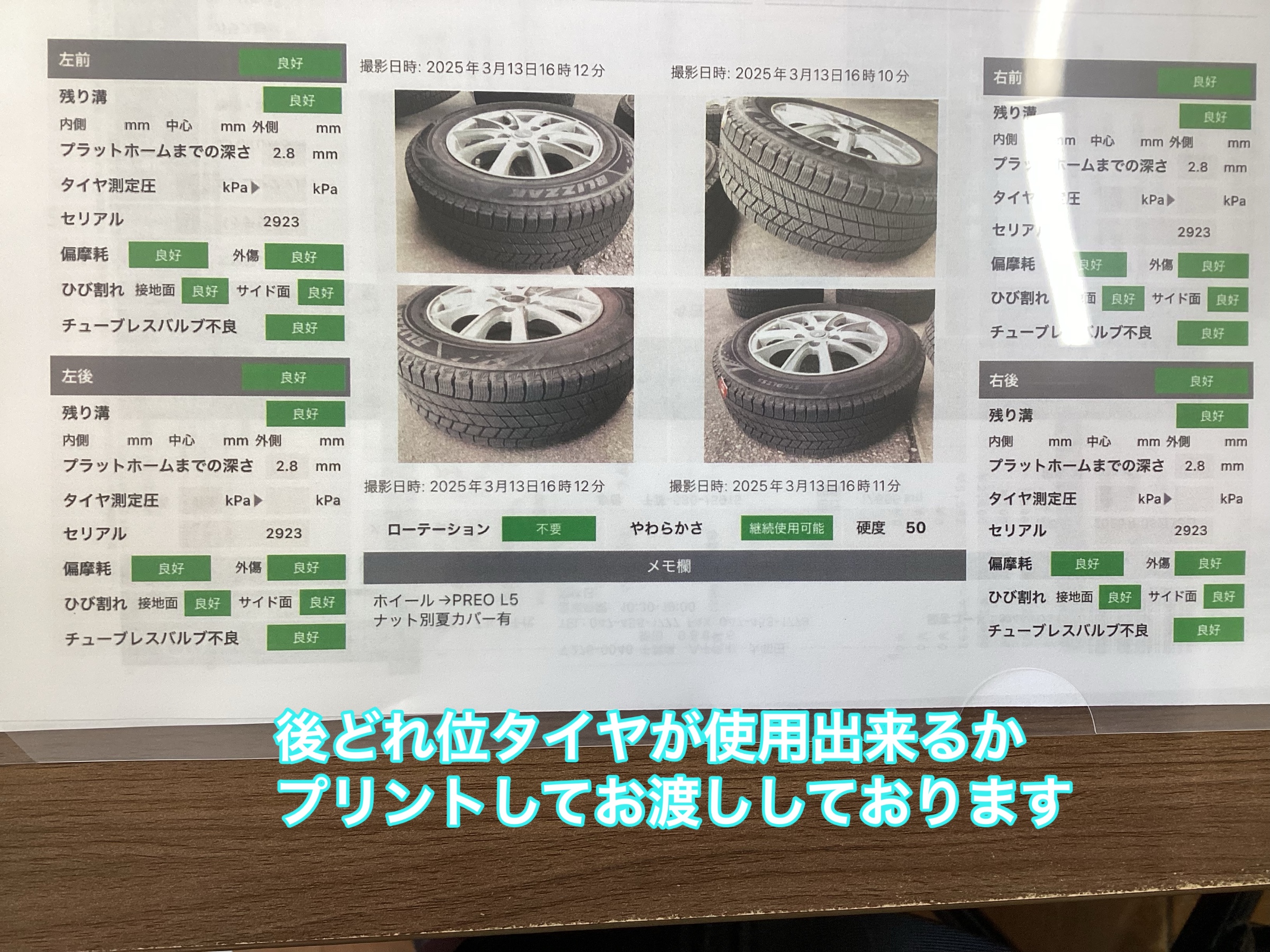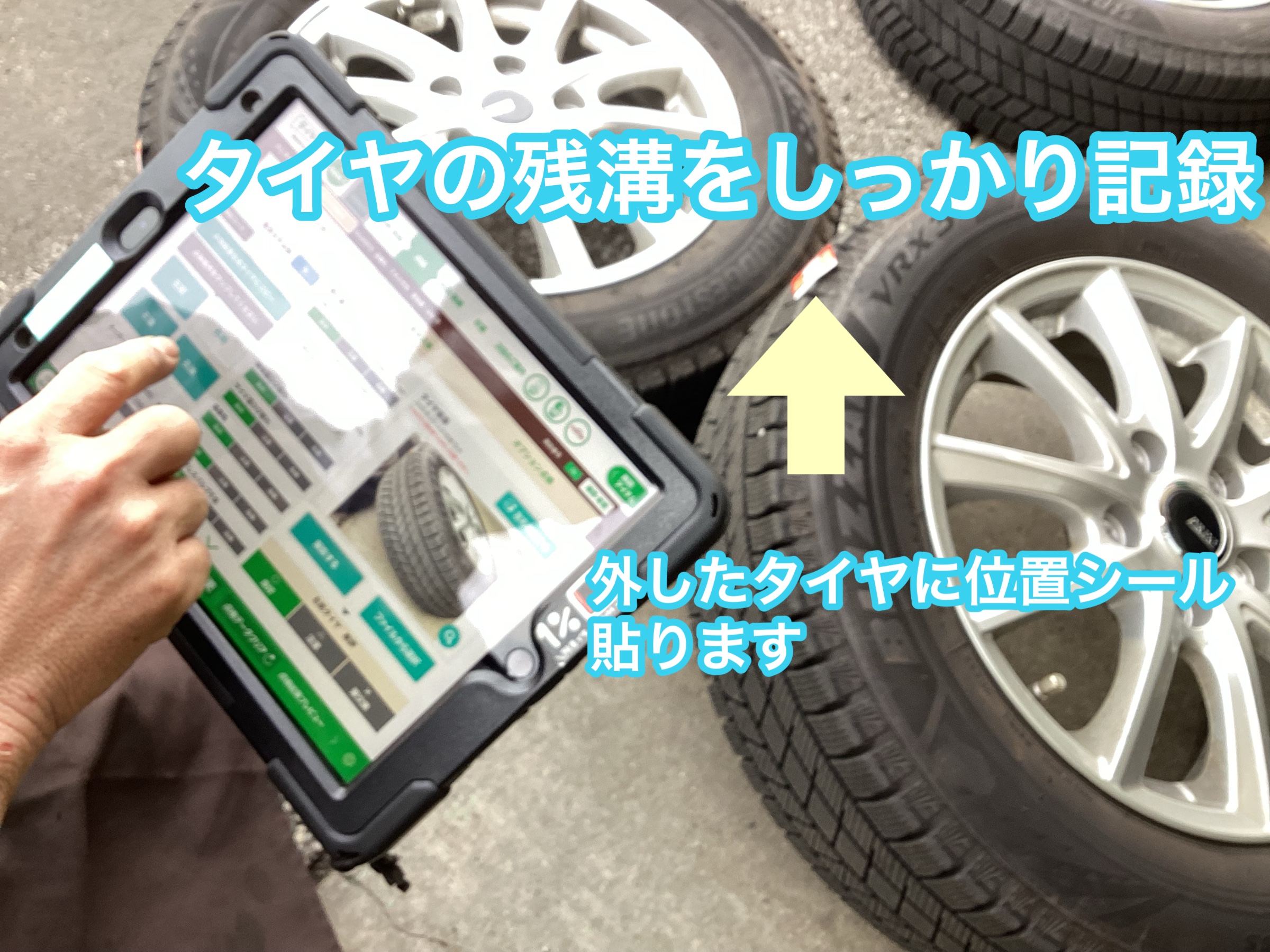 お伝えしております。外したタイヤはしっかり位置が解るステッカーも貼っております。