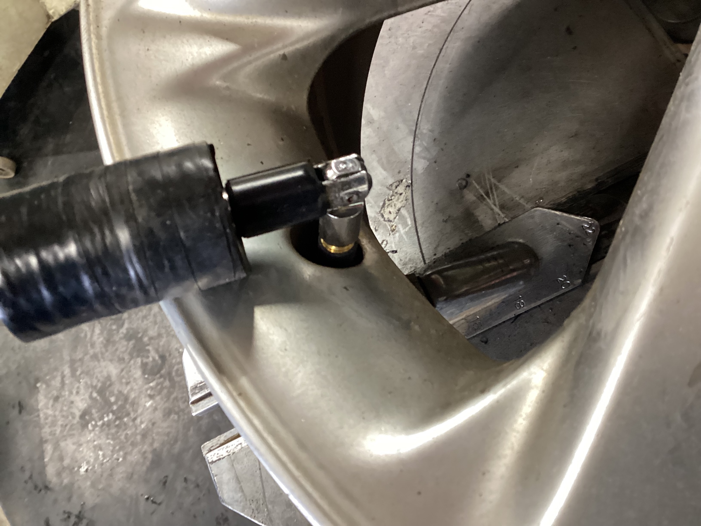 新品タイヤを組み込んだら窒素ガスを充填します。