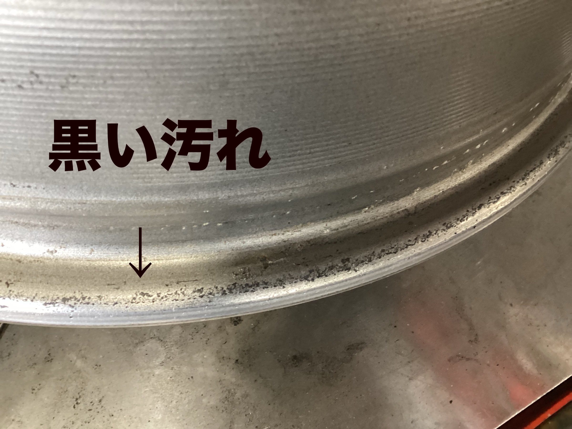 まず、タイヤを剥がすと、ホイールリムにタイヤカスが付着しているので、取り除きます。