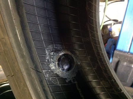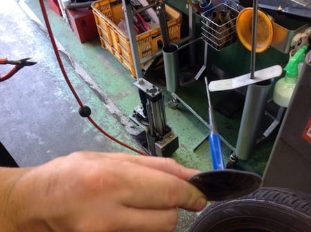 内側にパッチを貼ってあいている穴にゴムで封じます。