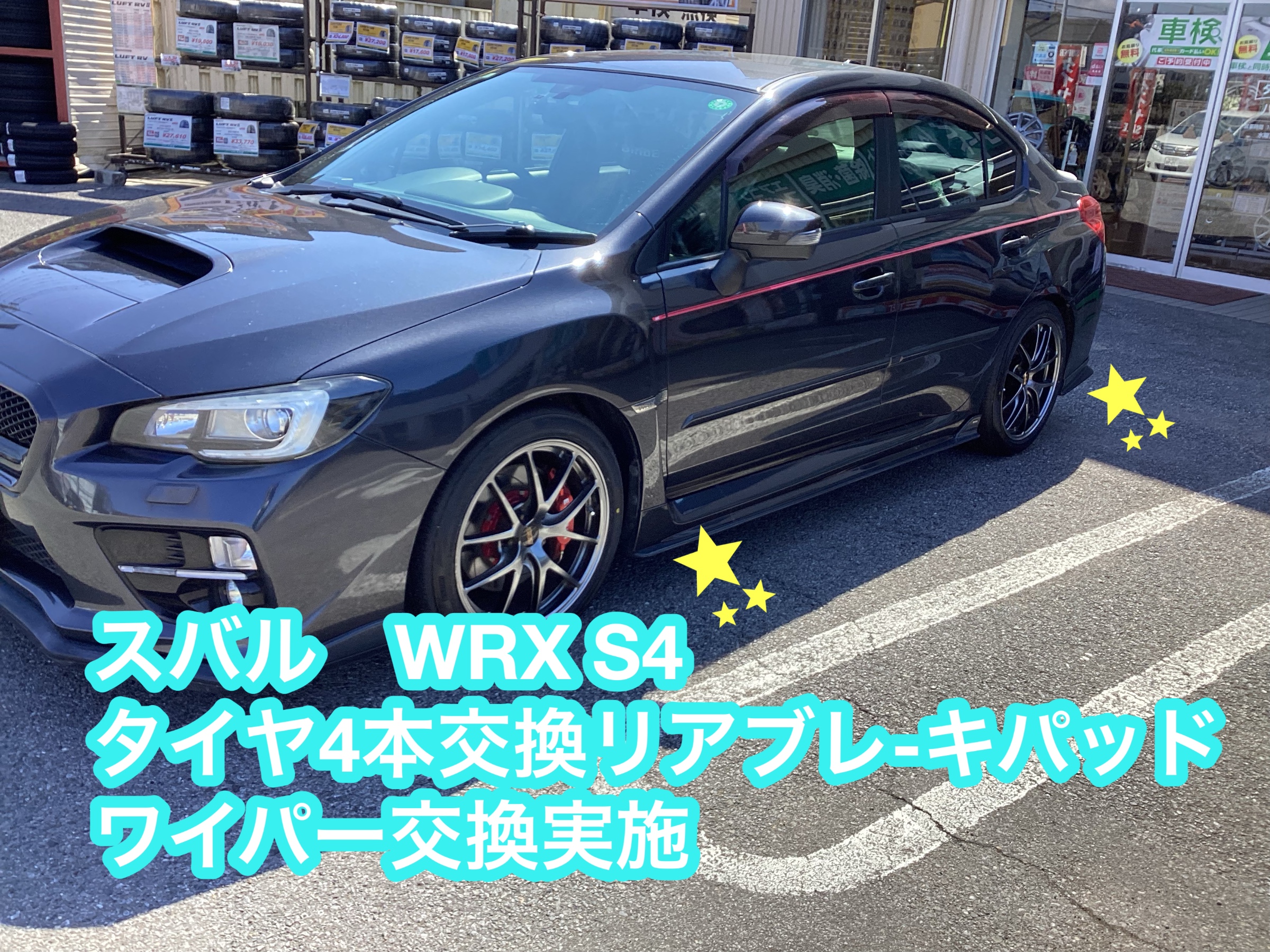 スバル WRX S4 タイヤ交換 リアブレ-キパッド ボッシュワイパー ワコーズパワーエアコン タイヤ館八千代