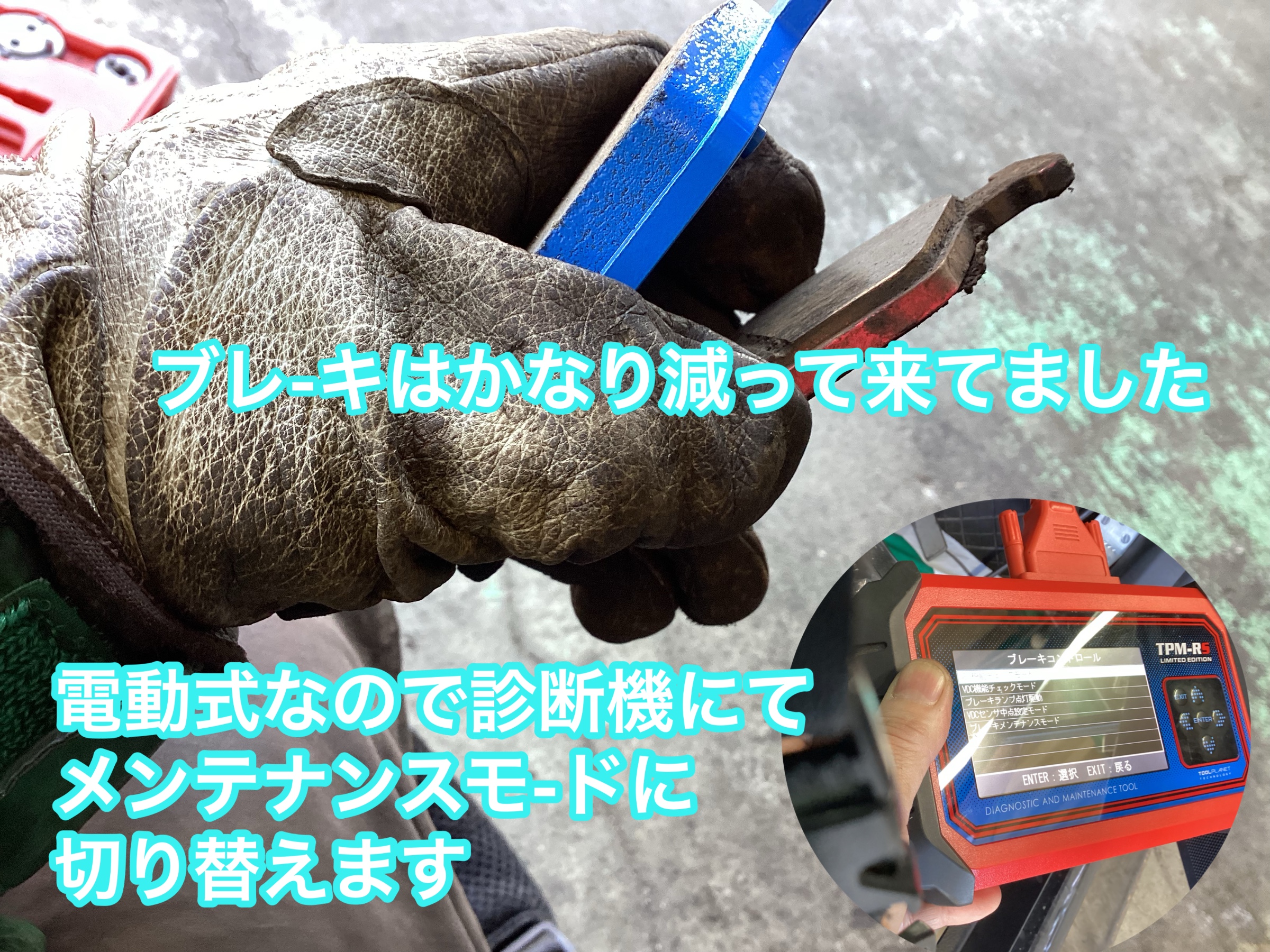 当店では診断機ありますので、電動リアパーキング車なども対応しております。タイヤ館八千代は整備認証工