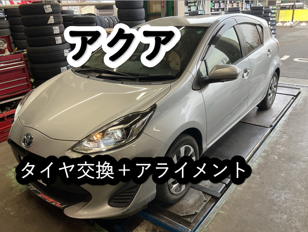 今回は、アクアのタイヤ交換+アライメントの作業事例です。
